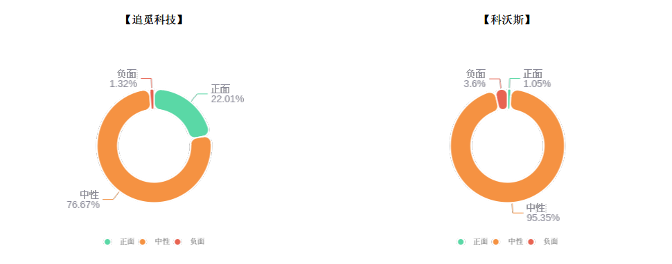 在分析时间段内,可看出两个方案信息属性均是中性信息占据主导地位,梳理发现相关负面信息多为用户反馈,业绩剖析等。