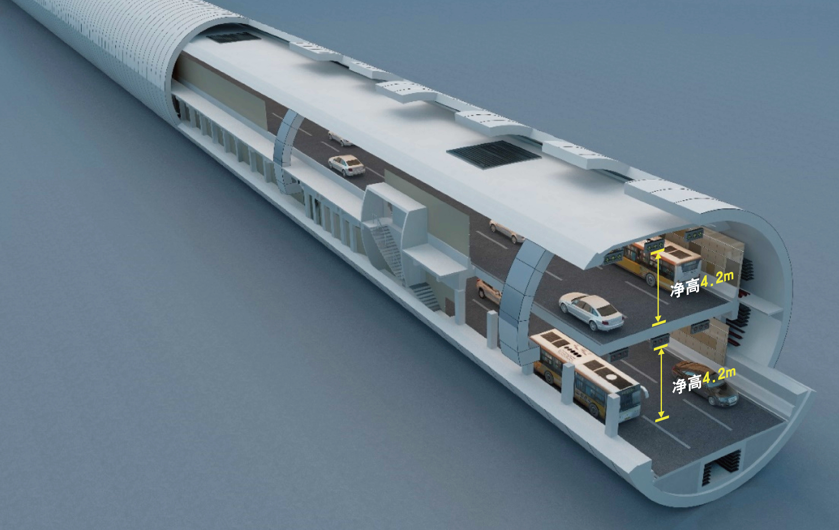 济南黄岗路黄河隧道是济南践行黄河流域生态保护和高质量发展国家战略的标杆性工程,全长约5.75公里,其中盾构段长约3.3公里,采用开挖直径17.5米的“山河号”盾构机施工。隧道单洞双层结构,上下层共设置六车道,设计时速60公里,可实现两洞隧道的交通功能,是国内首条穿黄单洞双层盾构隧道。隧道净高达4.2米,可满足公交、消防、管理及救援车辆等通行需求。