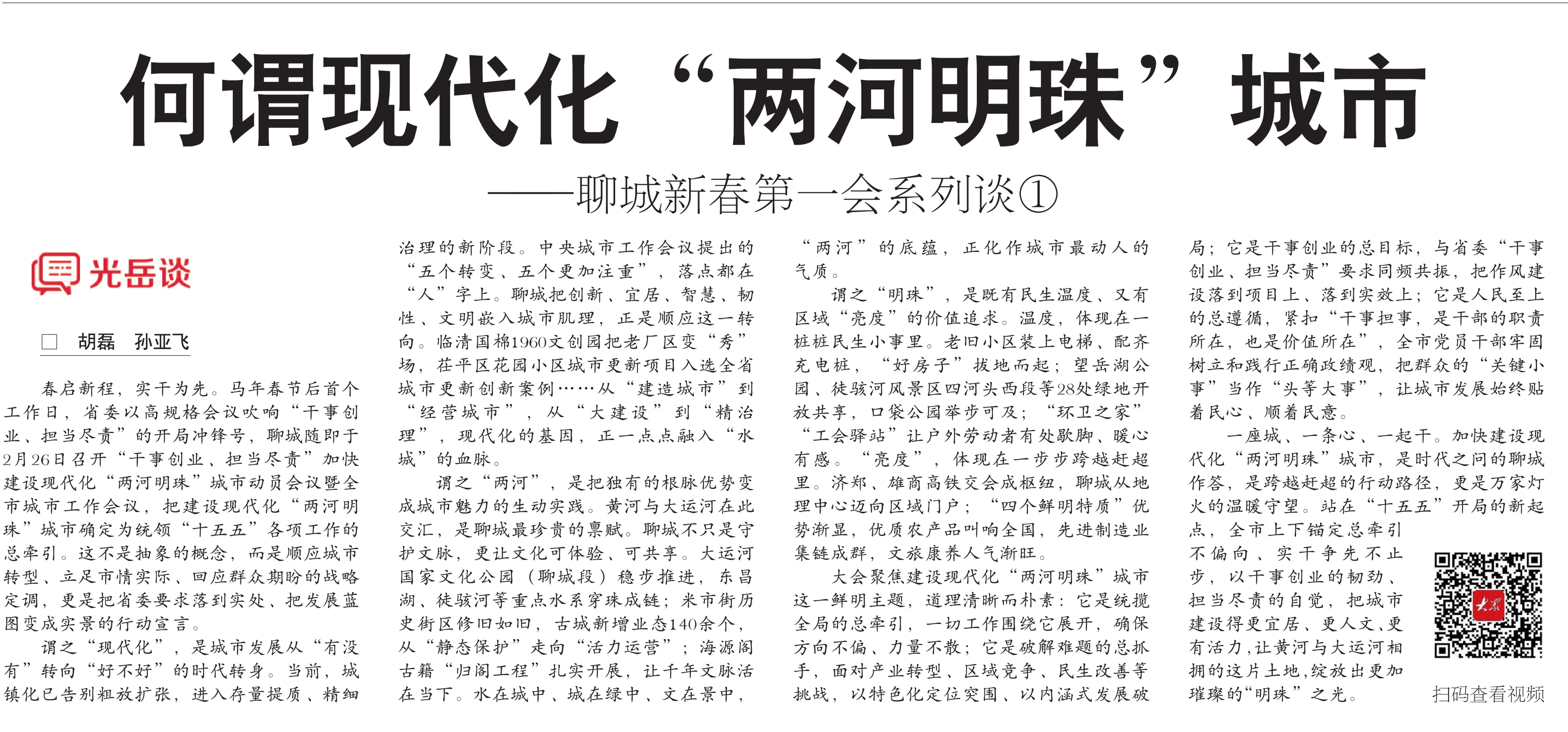 2月26日,聊城的新春第一会明确将建设现代化“两河明珠”城市作为贯穿今后五年的核心主线。