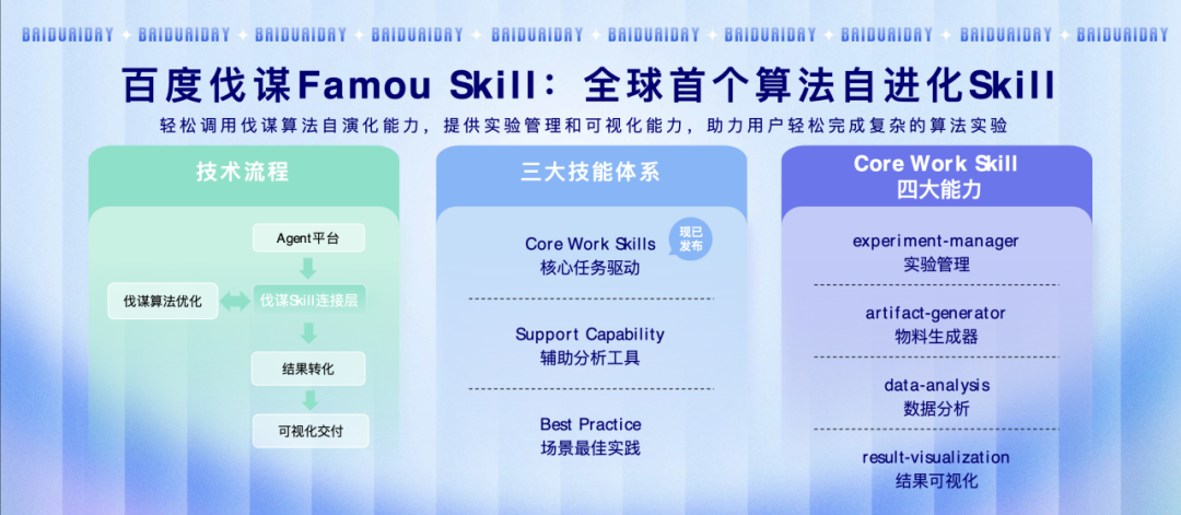 如果说龙虾本体是躯干,那Skills就是它的“钳子”。现场,百度智能云AI与大模型平台产品架构师李景秋展示了百度“龙虾”Skills全景图,搜索、伐谋、秒哒等技能全面开放。