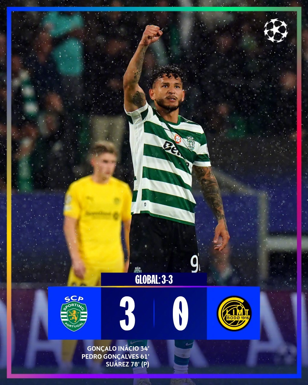 第61分钟,苏亚雷斯助攻,贡萨尔维斯抢点破门,葡萄牙体育2-0博德闪耀。