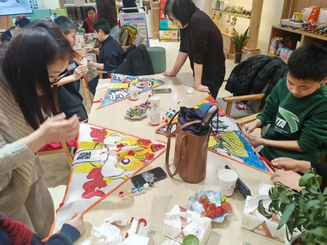 活动现场书香萦绕、暖意融融。12组家庭在温馨融洽的氛围中,沉浸式聆听老师讲解风筝的历史渊源与民俗内涵,深入感受传统民俗技艺的深厚底蕴。在家长的陪伴下,孩子们认真完成组装骨架、手绘图案、固定提线等一系列步骤,以素白风筝为卷,以五彩画笔为媒,在一笔一画间勾勒创意、挥洒童心,让原本素净的风筝变得绚丽多彩、各具特色,沉浸式体验传统手工技艺的乐趣与魅力。