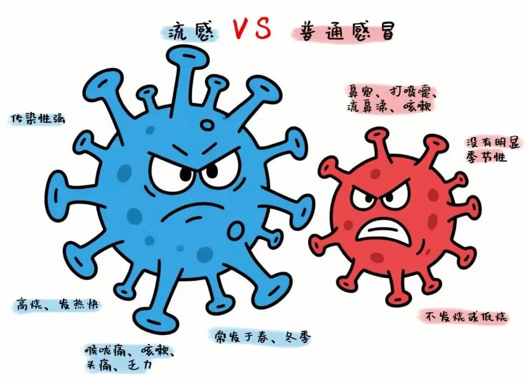虽然流感和普通感冒都属于呼吸道疾病,名字里也都带“感”字,但两者的差别其实很大:普通感冒症状轻微、大多能自愈;而流感是急性传染病,不仅症状更重,还可能引发重症。