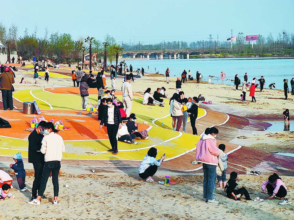 万福河沙滩公园成市民春游打卡地