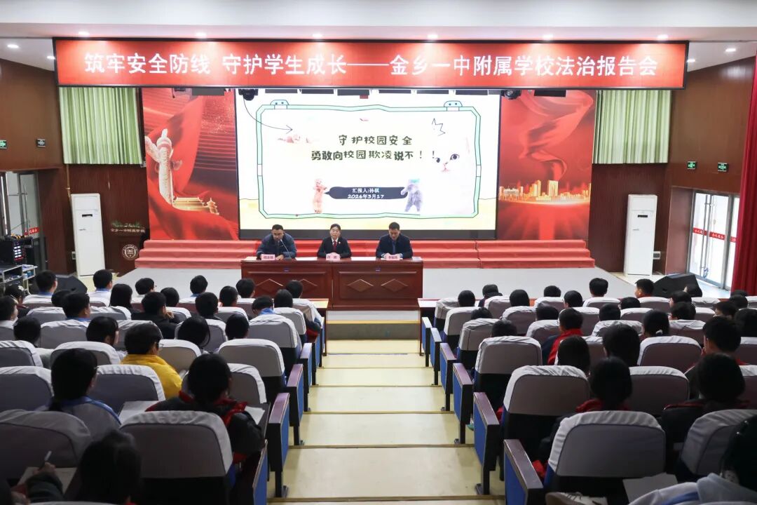 为筑牢校园安全法治防线,守护青少年健康成长,3月17日下午,金乡县人民法院鱼山法庭干警应邀到金乡县第一中学附属学校,开展“守护校园安全 勇敢向校园欺凌说不”的主题宣讲活动,为结对学校送去了一堂生动的法治教育课。