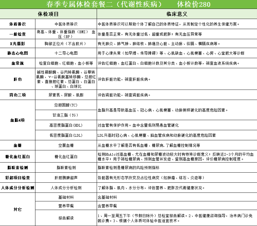 春回大地,万物生发,气温起伏不定、花粉柳絮纷飞、人体新陈代谢加快,过敏性疾病、肥胖、心脑血管疾病等春季高发问题接踵而至。中医倡导“未病先防、既病防变、愈后防复”,春季正是排查健康隐患、调理体质、扶正固本的黄金时节。为全方位守护市民健康,滨州市中医医院(滨州医学院附属中医医院)健康管理(治未病)中心,特推出2026春季专项体检套餐,融合西医精准筛查+中医特色外治,为您全年健康筑牢防线!