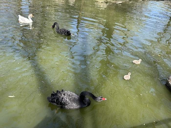 泉城春意正浓,动物们的世界也热闹非凡。春江水暖“鸭”先知,济南野生动物世界的花鸟鸣谷的一群黑天鹅宝宝成为园区顶流。它们欢快地在水中游来游去,仿佛春天的精灵,吸引了众多游客的目光。