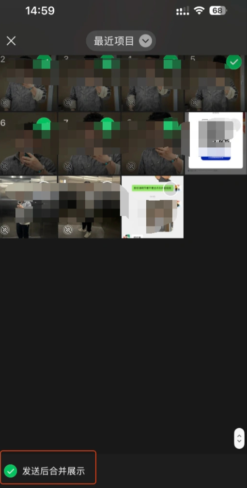 该用户还进行了补充:“iOS 系统 8.0.69 版本,选择三张以上视频或照片底下就会出现合并发送的选项,今天下午刚发现有的功能,应该是内测。”
