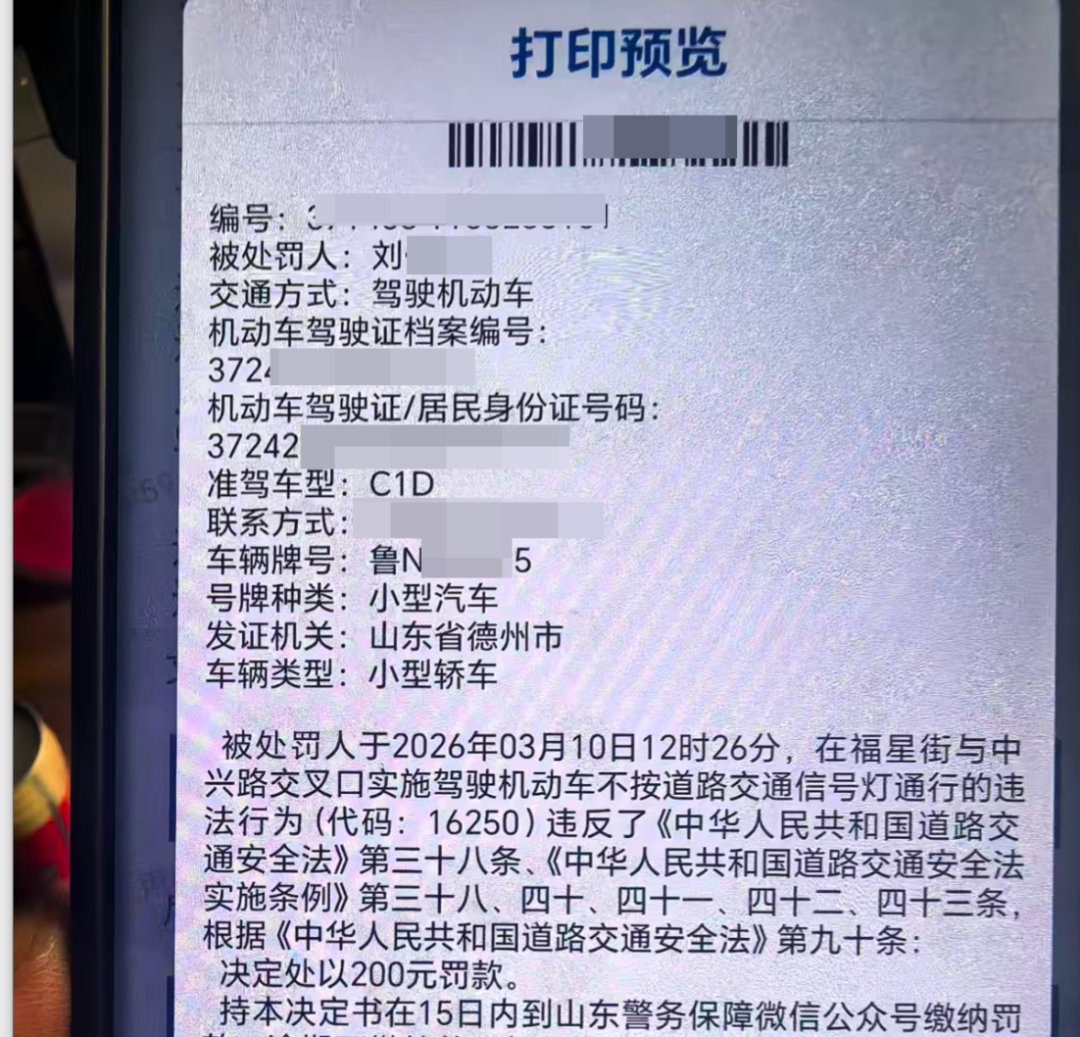 驾驶人因实施驾驶机动车不按道路交通信号灯通行的违法行为,被处以200元罚款、驾驶证记6分。民警对其变道影响其他车辆正常通行的行为进行了警示教育。