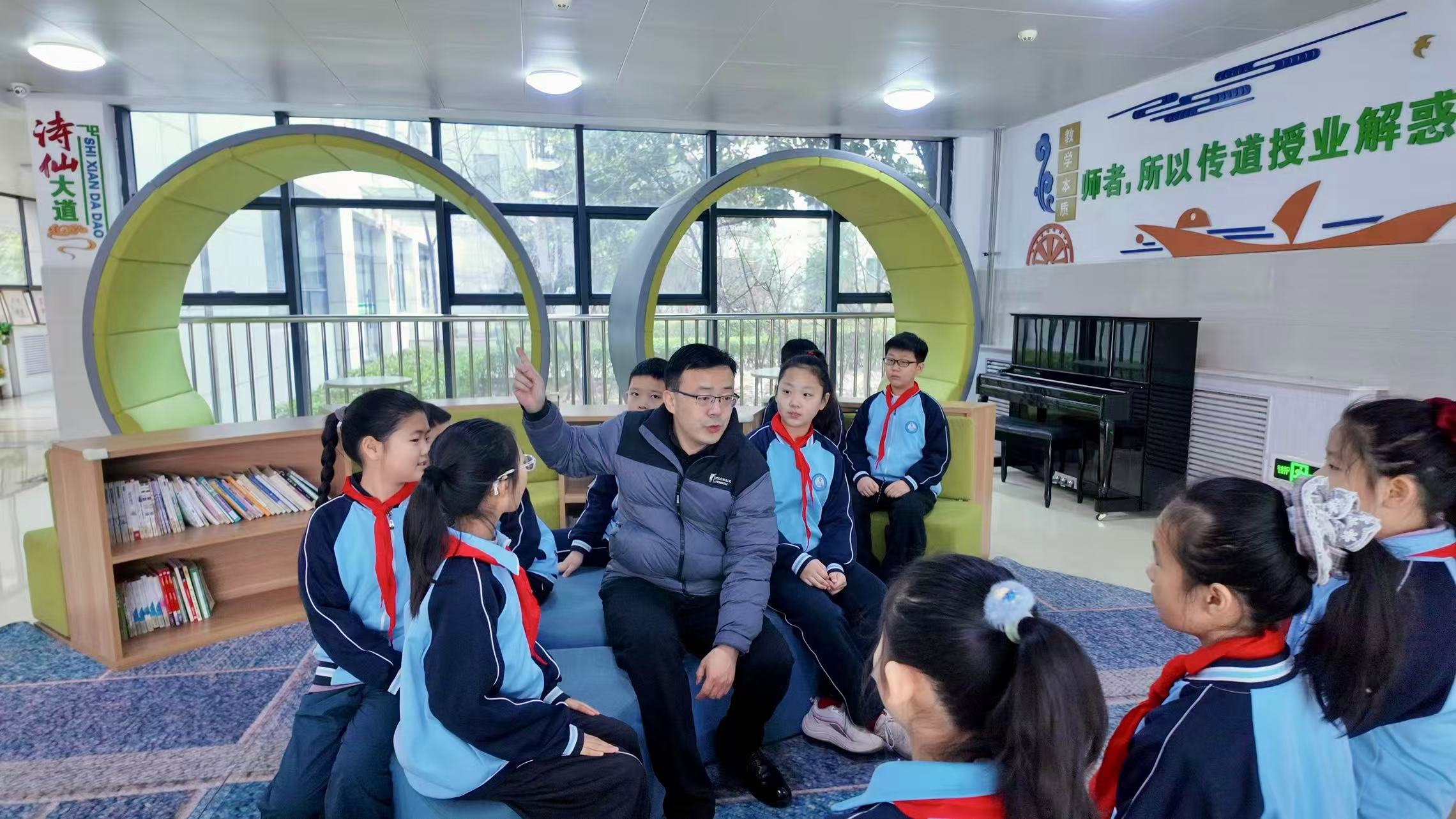 “建诗书校园 办新质教育”是北湖二小的办学宗旨,该校党支部书记、校长贾涛说,学校重视优秀传统文化对学生的浸润滋养,在文化传承中为学子们培根铸魂。通过设置诗仙大道、诗圣大道和学子之路,梅花园、牡丹等场景,营造知书明理的校园环境,潜移默化中浸润学生思想灵魂。另一方面,在人工智能迅速发展的当下,该校利用校本课程在内的课程设置,努力培养着学生的美育、体育、劳动技能等综合素养,助力学子核心素质提升、促进其全面发展。