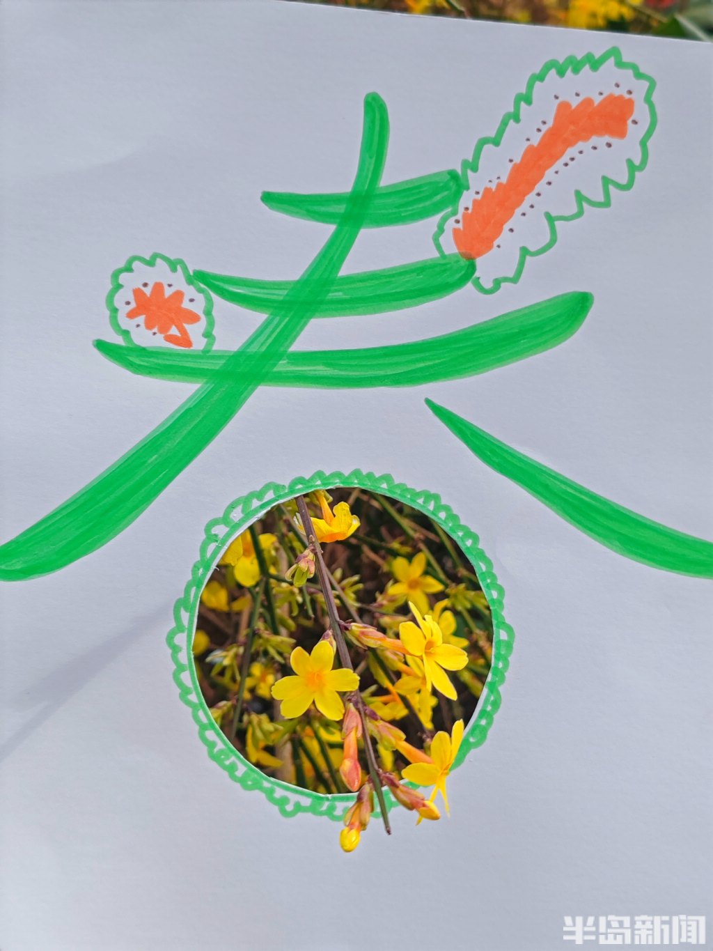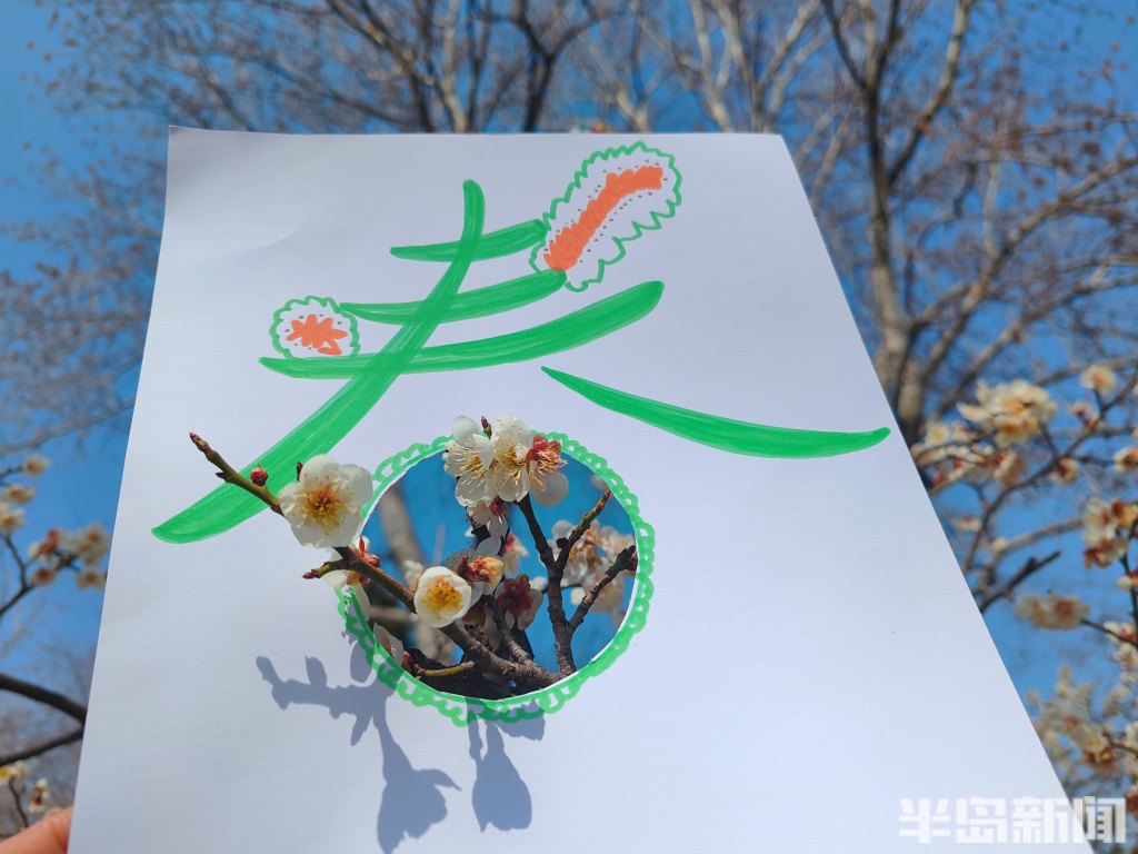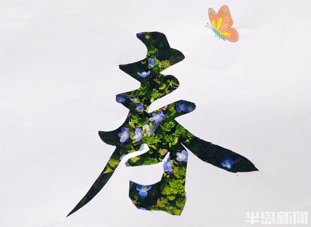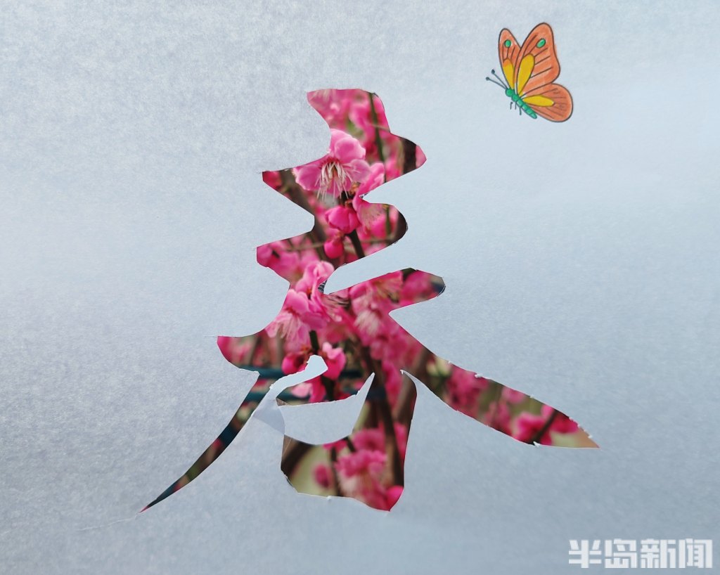 此时,正是岛城春暖花开的时节,梅花、玉兰花、迎春花等各类花卉争相绽放,公园街巷渐渐变成了花的海洋。日前,记者带着孩子,先用彩笔为“春”字涂上鲜艳的色彩,再用刻刀精心雕琢出各种生动可爱的镂空图案。当灵动的“春”字与各式镂空图案和满园繁花相映成趣,便勾勒出了另一种别具韵味的春天。