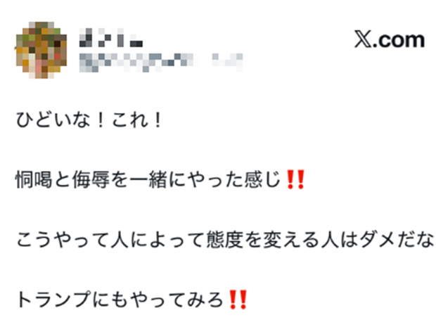 有人写道,“这真过分,她的神态表现出恐吓和侮辱。这种待人处事区别对待的人不是好人,她敢用这种态度见特朗普吗?”