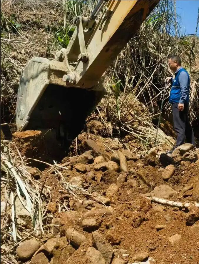 据悉,最先发现蟒蛇的是在福田乡洛溪旁修河堤的工人。当时,施工人员正操作挖掘机开挖土方,在工地旁十余米处发现这3条蟒蛇。