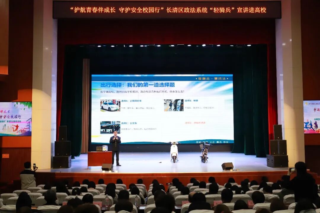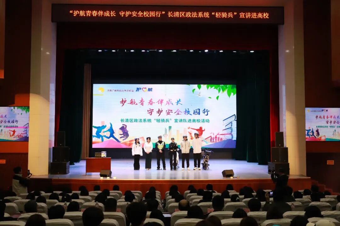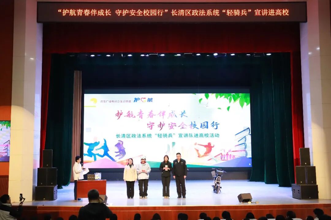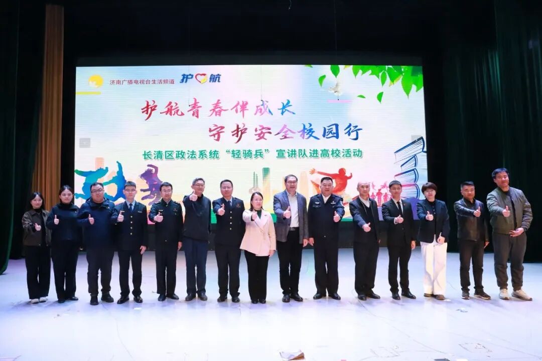 3月17日,济南市长清区委政法委联合济南广播电视台生活频道走进济南幼儿师范高等专科学校,举办“护航青春伴成长 守护安全校园行”——长清区政法系统“轻骑兵”宣讲队进高校活动。济南幼儿师范高等专科学校党委书记李海平,市公安局长清分局高级警长驻高校专班主任石志勃,区委政法委政治处主任孔凡英,区法学会专职副会长兼秘书长范勇,市公安局长清分局、济南幼儿师范高等专科学校有关负责同志出席活动,济南广播电视台主持人主持活动。