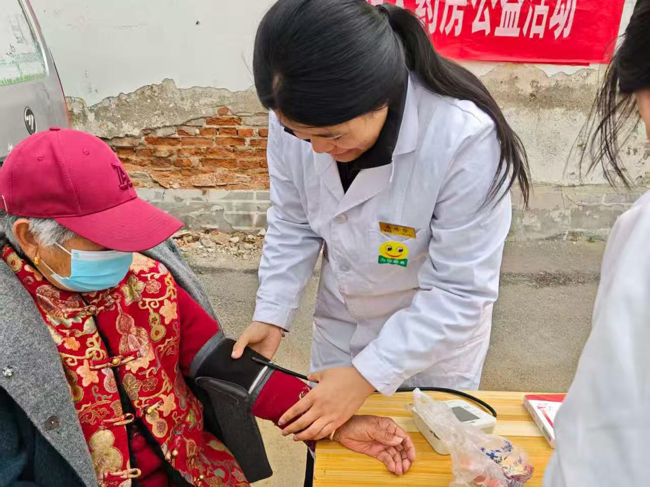 活动现场,医务志愿者们分工明确、热情细致,将专业知识转化为贴心服务。在血压检测区,志愿者们耐心为老年居民测量血压,详细记录数值,针对血压偏高的老人,细致询问既往病史和用药情况,轻声叮嘱饮食、作息注意事项,讲解血压日常监测方法。