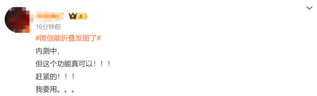 而对于此次折叠发图功能,客村小蒋在微博上与网友互动时称:“你已经用上了?我还没有。”