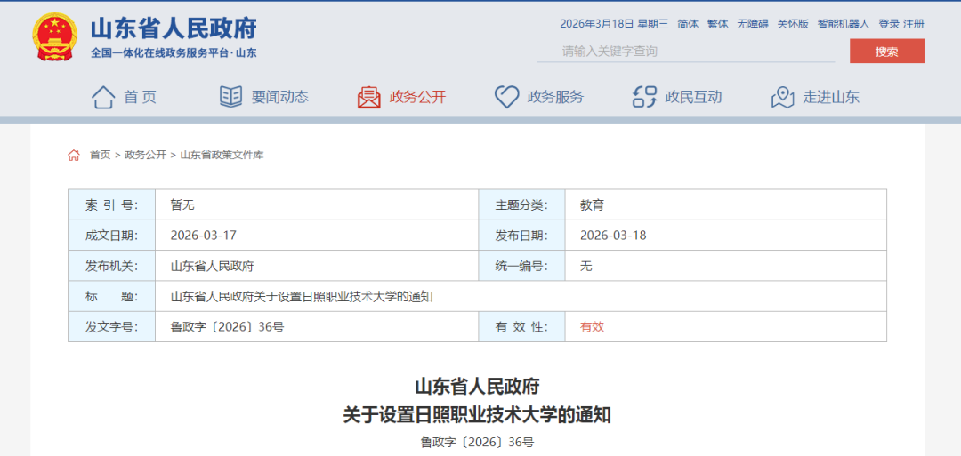山东省人民政府网站 2026-03-18 16:14:15