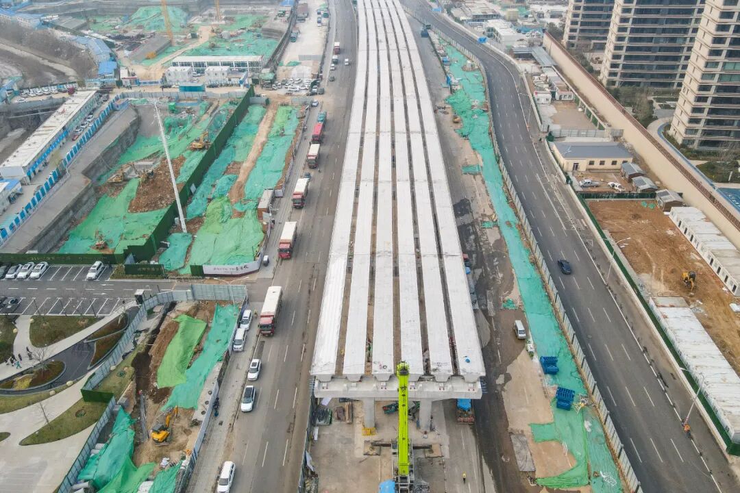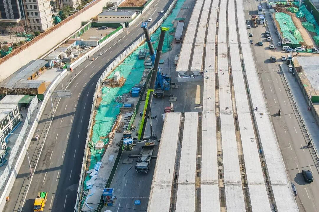 交通导改的突破,为工程全面提速打开了新空间。目前,华茂路至新泺大街段作业面已全面铺开,正式启动连续架梁施工。按照计划,该区段将形成2至16跨连续作业区域,桥面系作业班组同步压茬推进。