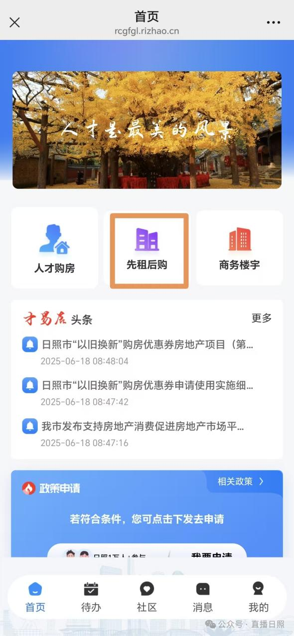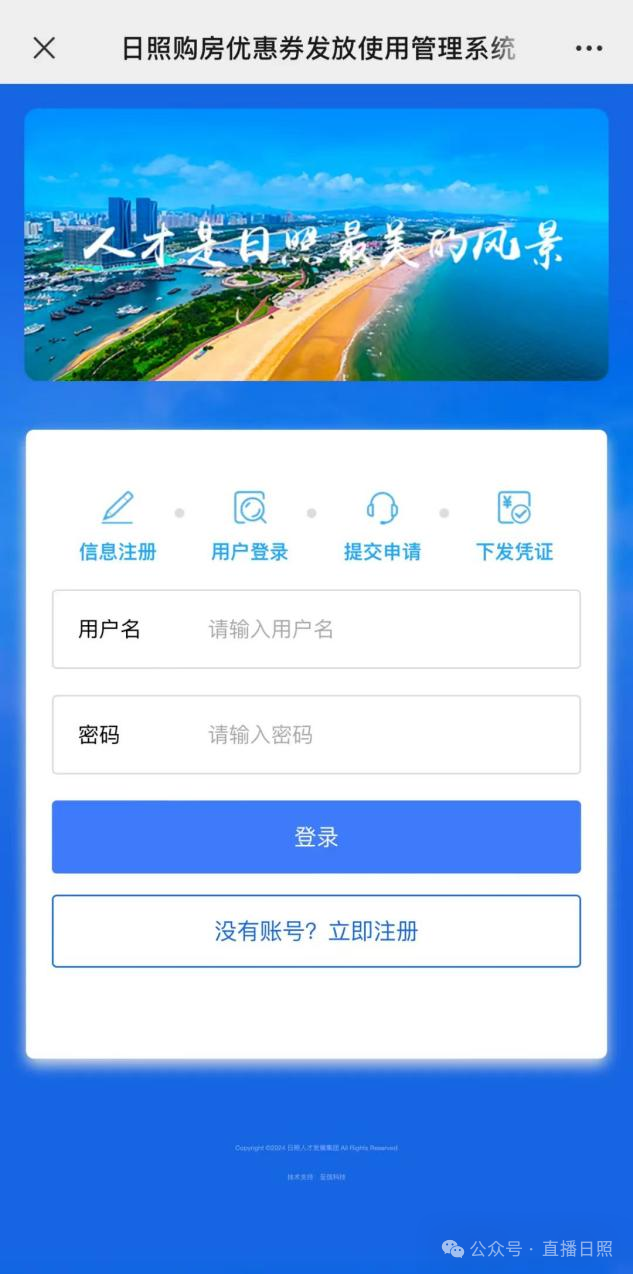 为落实《日照市“先租后购”人才住房暂行办法》(日建发〔2026〕1号)有关“先租后购”政策要求,日照人才发展集团开发了日照市购房优惠券发放使用管理系统“先租后购”模块。现将商品住房优惠券补贴申请具体操作流程明确如下: