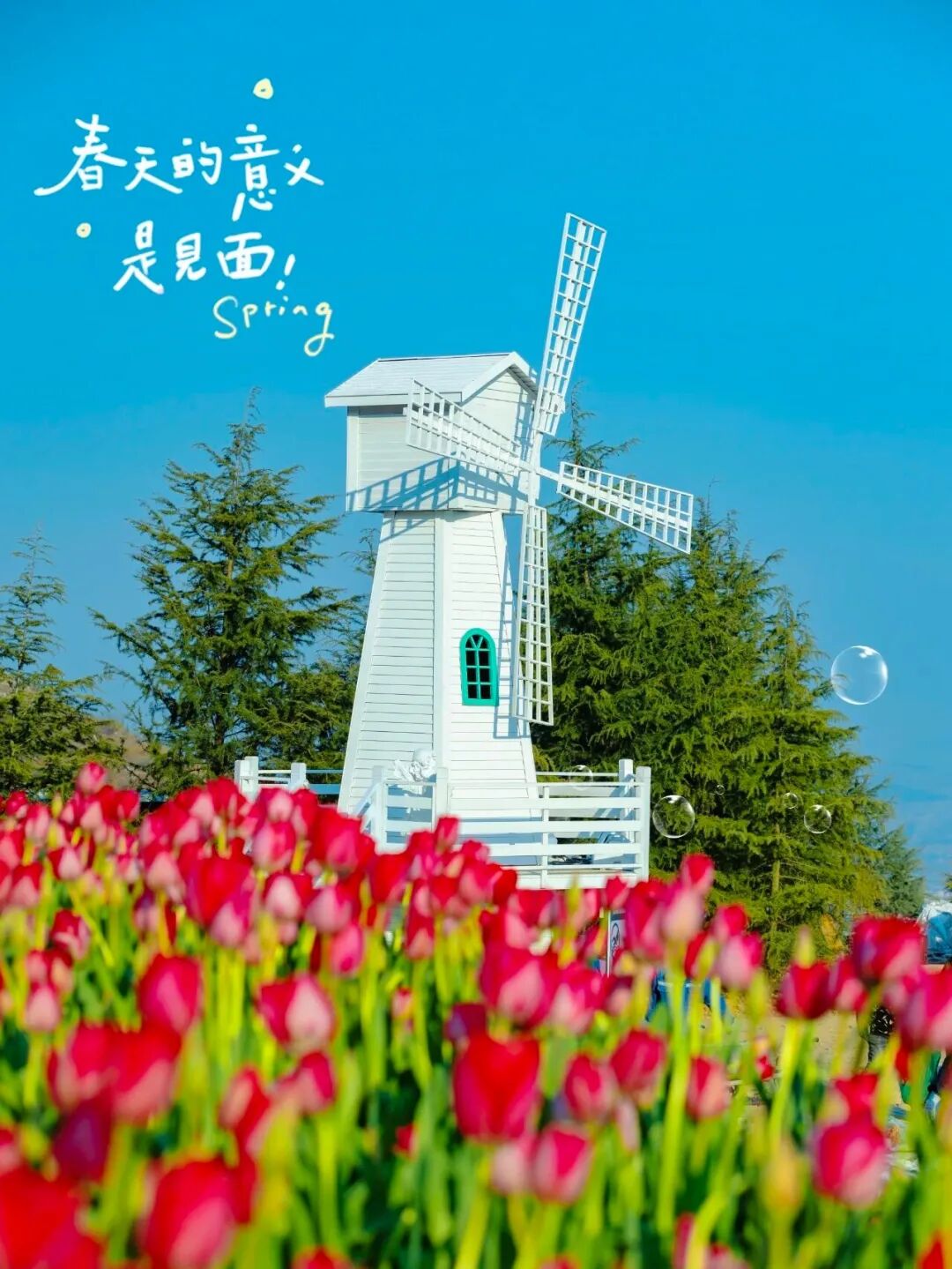 郁金香,这本该属于春末夏初的鲜花,在阳春三月便急不可耐地绽放,还不到春分时节就绽出一片静谧的粉红花海。