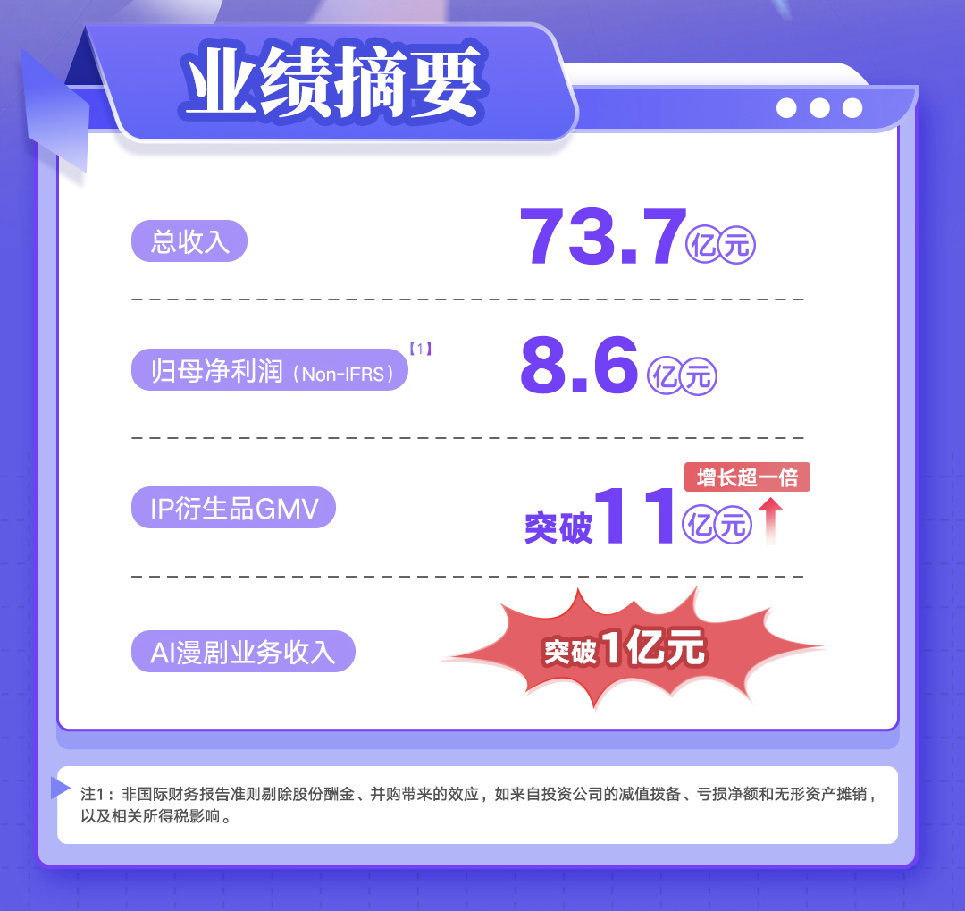 3月17日,阅文集团发布2025年全年财报。数据显示,2025年阅文实现营业收入73.7亿元,Non-IFRS归母净利润8.6亿元。在“IP+AI”战略指引下,阅文的AI漫剧、短剧、IP衍生品等新业态实现多元突破,其中AI漫剧收入呈爆发式增长,突破亿元大关;IP衍生品GMV同比增长超一倍,突破11亿元。