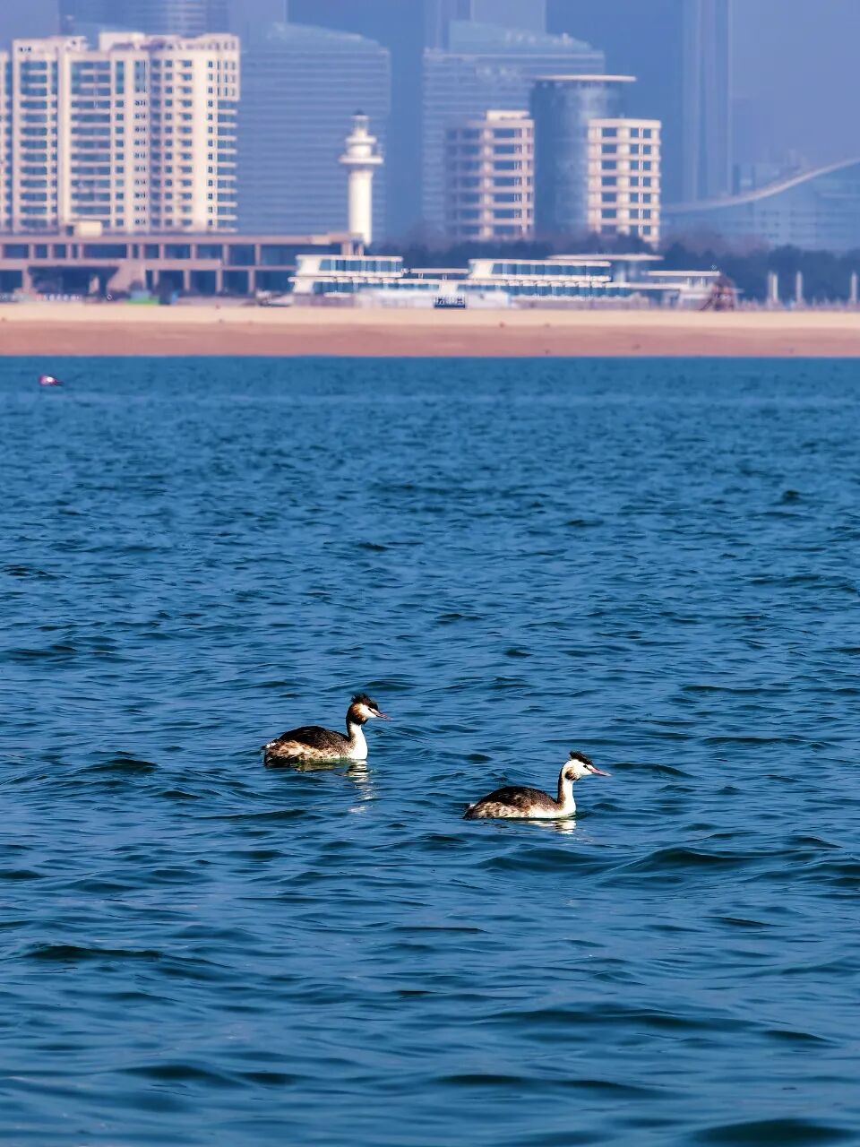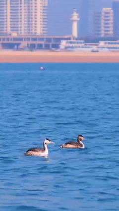 不过记者提醒,凤头䴙䴘生性警觉,极易受惊。在此提醒广大市民,文明观鸟,保持安静,不打扰、不靠近,共同守护这幅人与自然和谐共生的春日画卷。