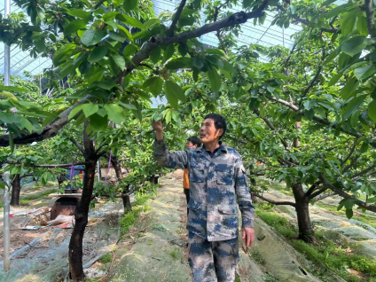 眼下,大棚樱桃正进入关键管护期,和来友成一样,全镇的种植户们都绷紧了弦,在日复一日的精细化管护里打磨品质。从“去密留匀”的疏果标准,到白天20℃-25℃、夜间不低于10℃的精准温控,再到60%左右的湿度管控,每一项管护细节都有章可循,既规避了落果、病害的风险,也为樱桃的优产优收筑牢了根基。