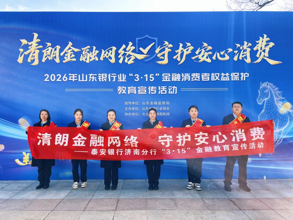 3月15日,由山东金融监管局指导、山东省银行业协会主办的2026年山东银行业“3·15”金融消费者权益保护教育宣传活动在济南泉城公园顺利举办。本次活动以“清朗金融网络 守护安心消费”为主题,汇聚全省30余家金融机构同台参与。泰安银行作为地方性银行代表,以“新市民 新金融 新未来”为主题亮相,聚焦“两司两员”等重点群体,全方位普及金融知识、筑牢风险防线,以专业与温度守护泉城市民金融权益 。