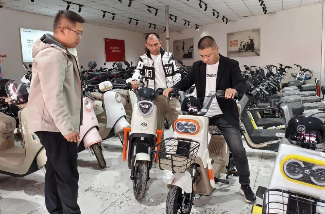 喀什市消费者体验电动自行车。 喀什市融媒体中心 记者董晓 摄