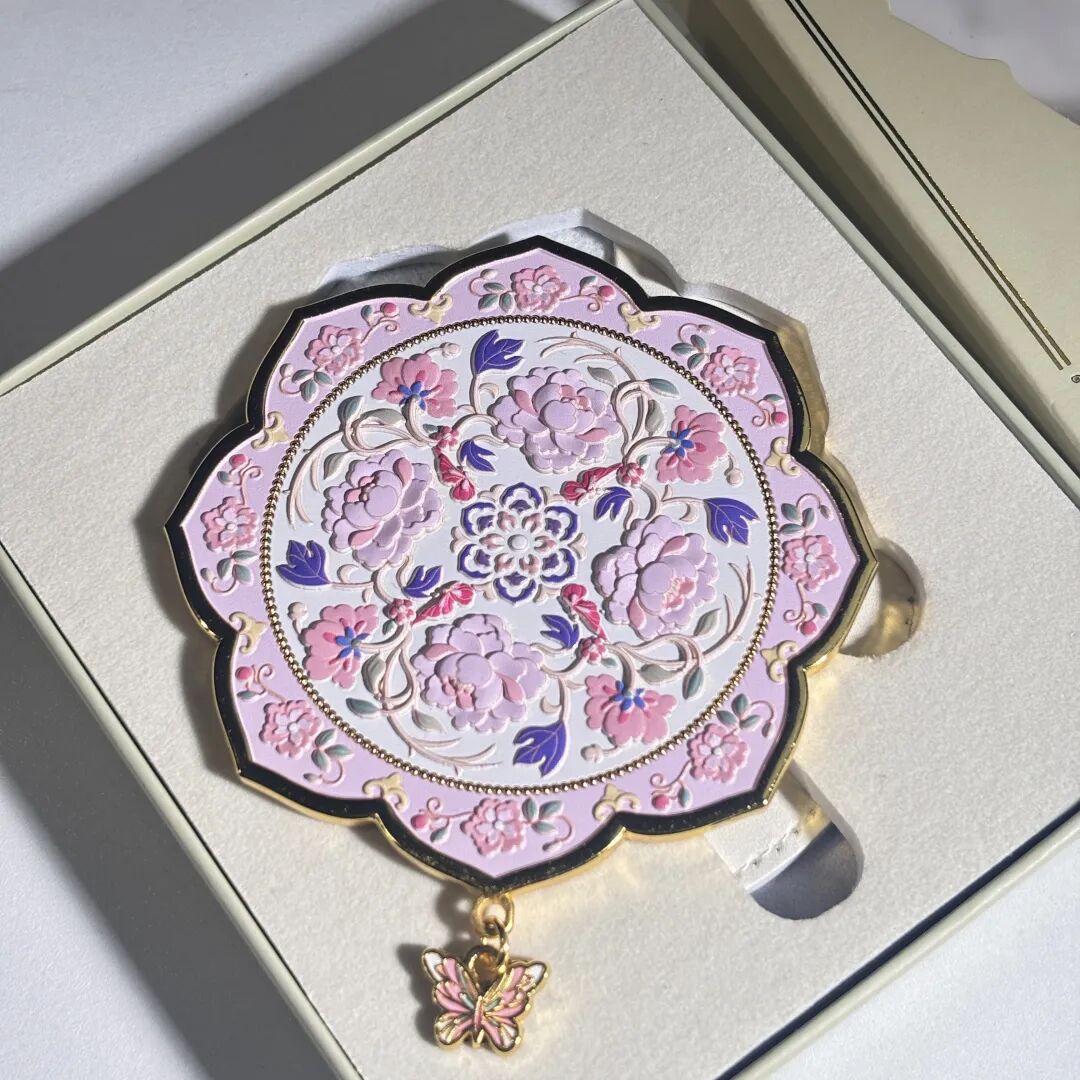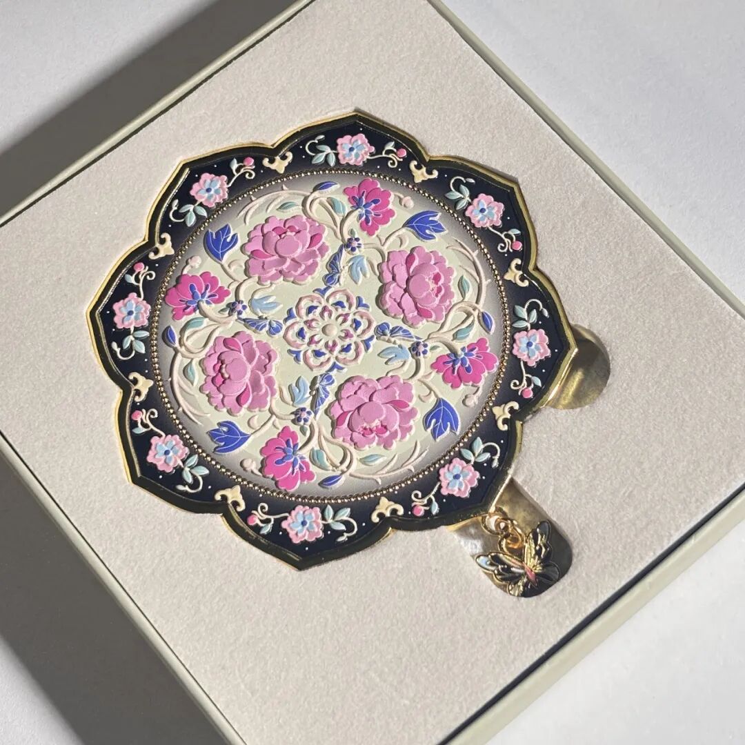 4、金属牡丹纹样镜子:核心设计元素选取牡丹缠枝纹样,将菏泽独有的牡丹文化与日常用品完美融合。整体采用精致金属浮雕工艺打造,纹样线条流畅细腻,立体感十足,触感与视觉质感双重升级。