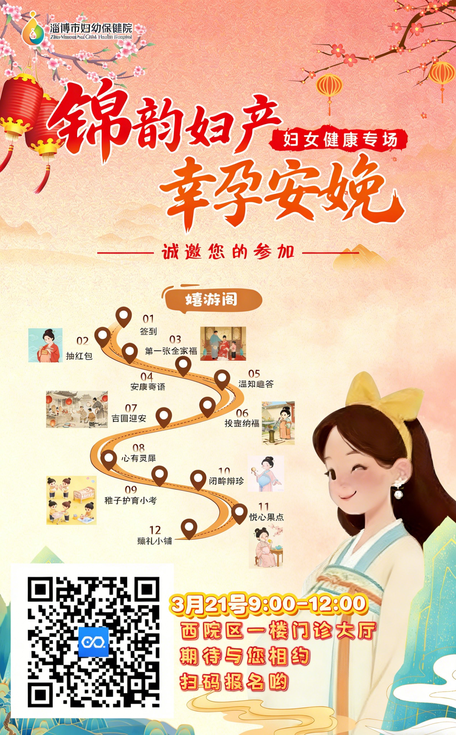 为全面关爱女性身心健康,精准呵护孕产妇特殊群体,为广大就诊人群提供温馨贴心的健康服务与休闲体验,3月21日,淄博市妇幼保健院(淄博市第三人民医院)将举办“古韵雅集——锦韵妇产·幸孕安娩”妇女健康专场活动,诚邀广大女性、孕产妇及就诊人群共赴一场兼具雅致韵味与健康温度的专属之约。