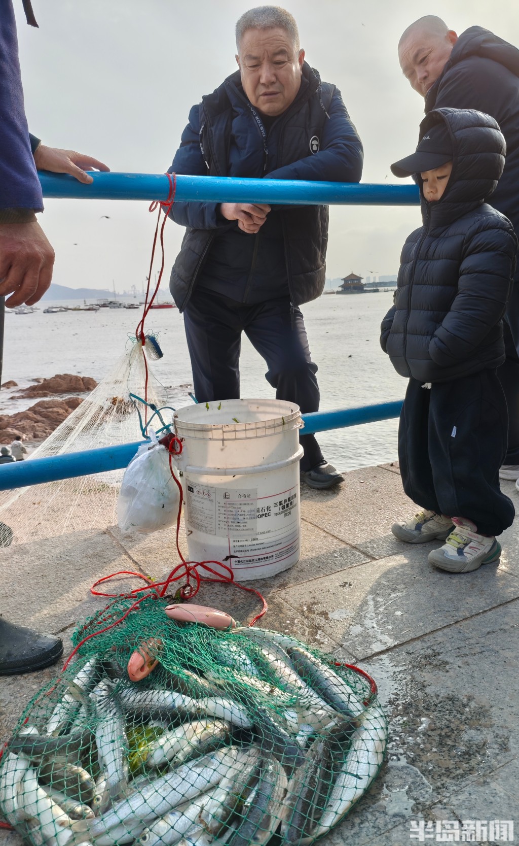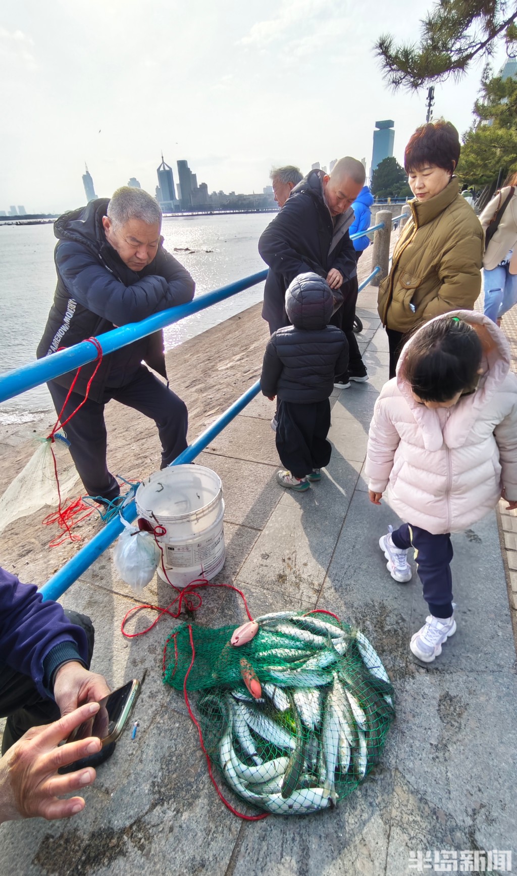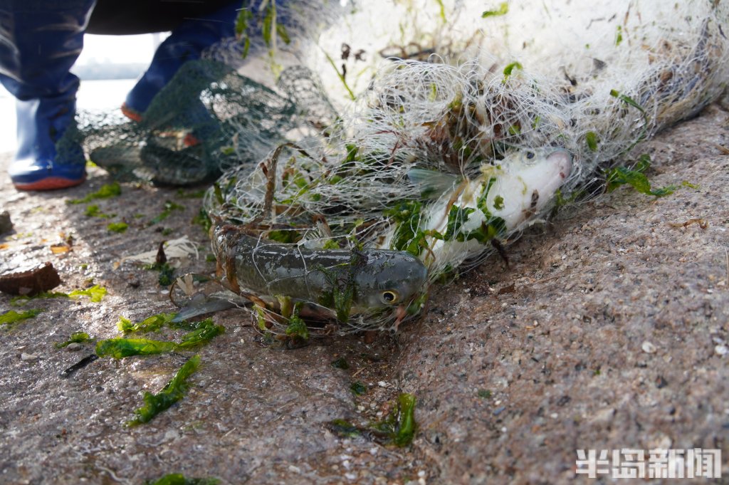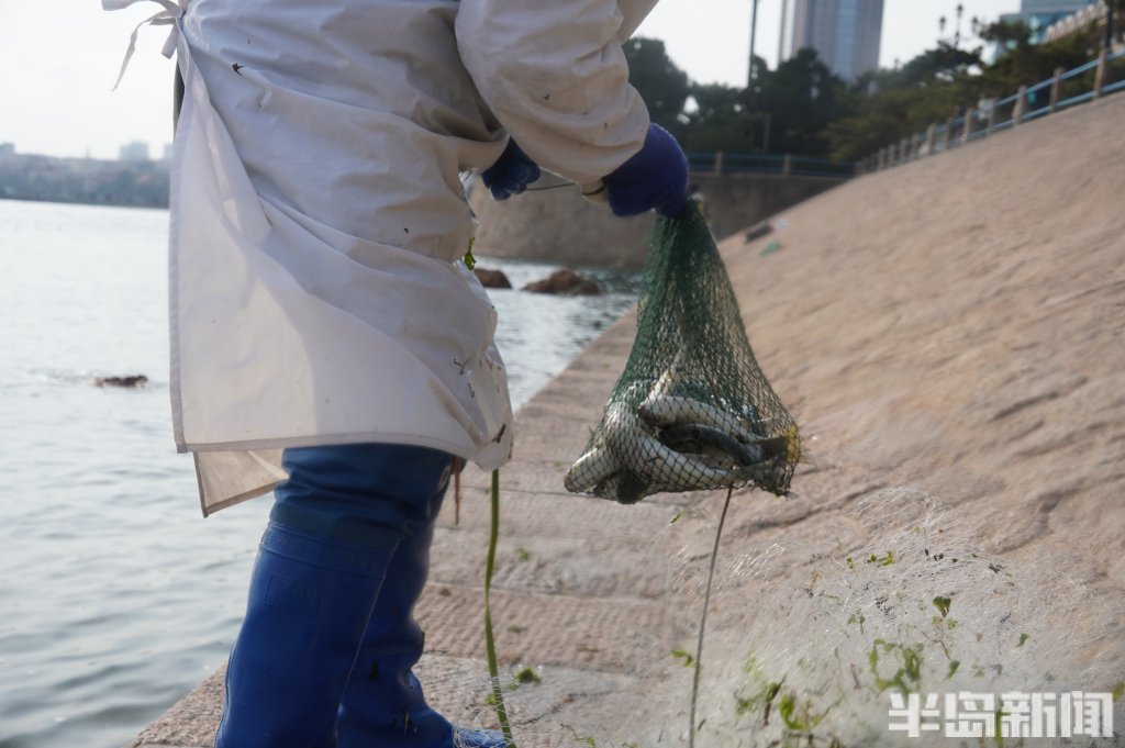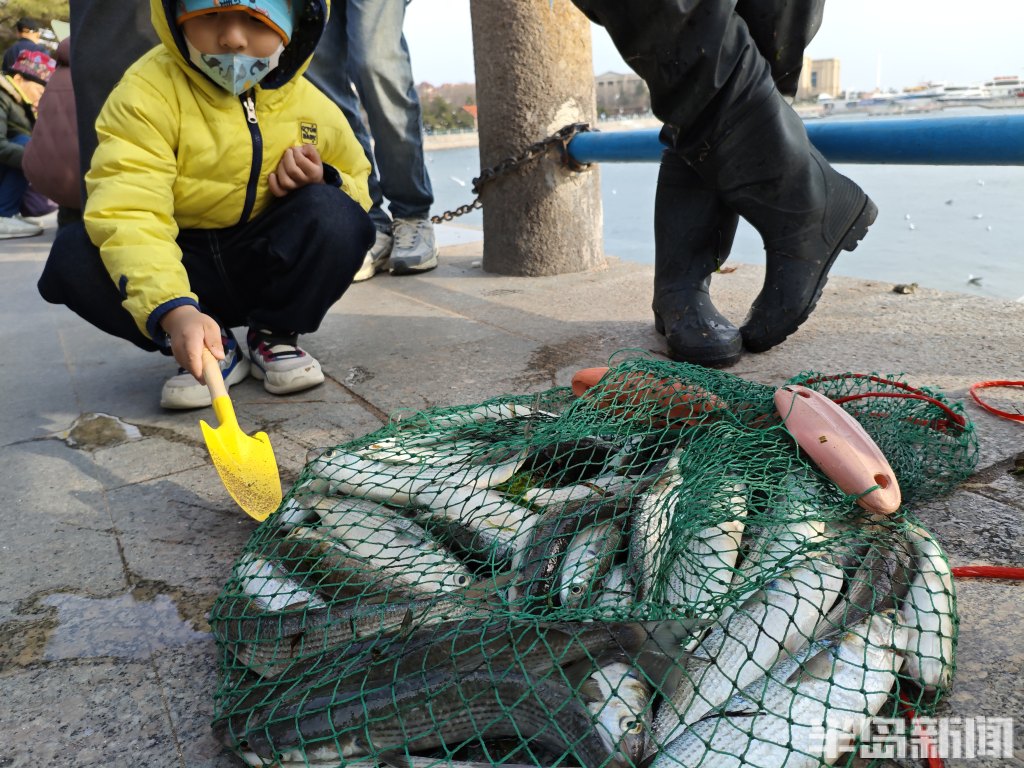 3月18日,一群青岛大爷在前海捕鱼。近日回温,青岛前海梭鱼、鲻鱼扎堆回游近岸。每天涨潮时分,十几位青岛大爷穿着水衣来到前海沿,一展撒网捕鱼绝活,吸引很多游客围观,趣味十足。运气好时一网就能逮住几十条鱼,最大的两三斤重,回家添道美味下酒菜。(半岛全媒体记者黄杰显)