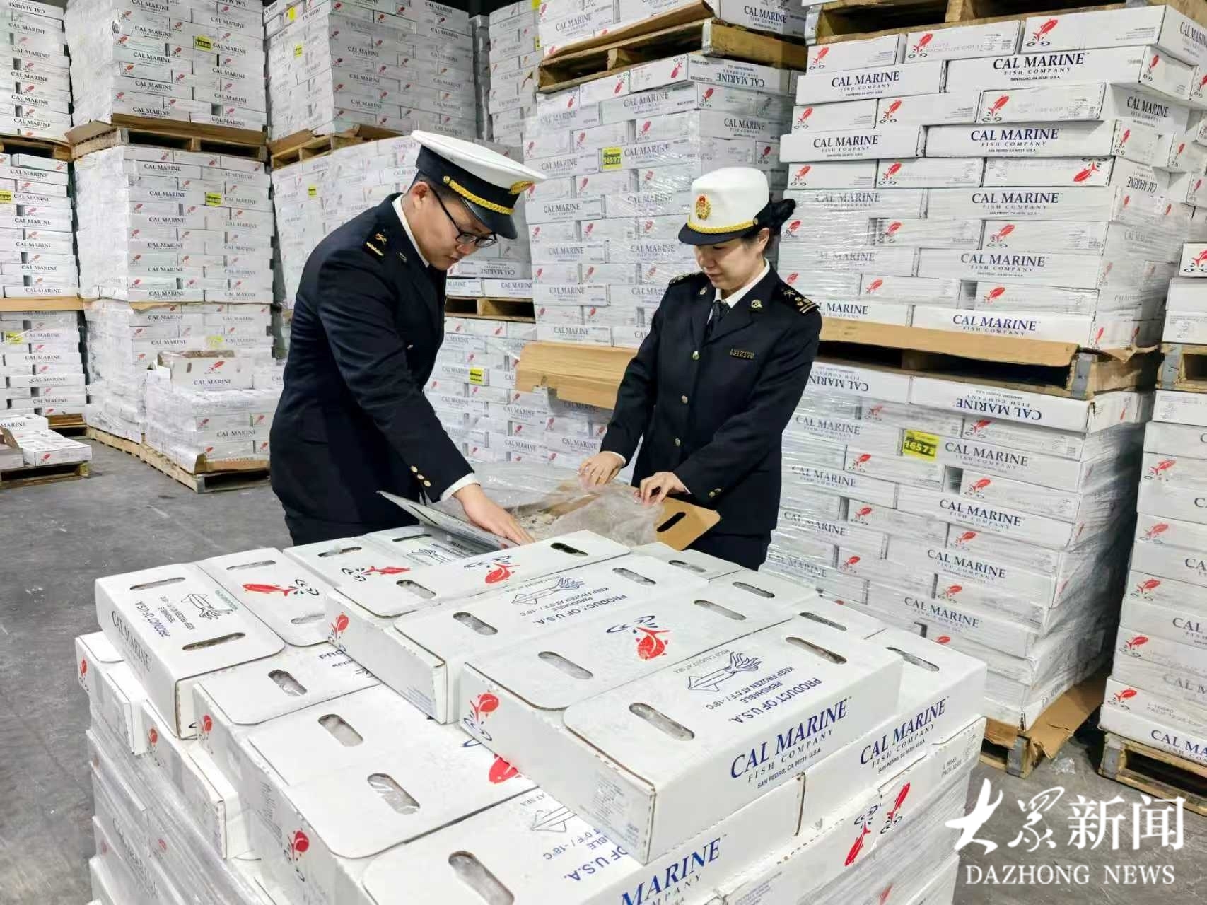 3月13日,济南海关所属潍坊海关关员正在辖区水产品加工企业监管出口产品。