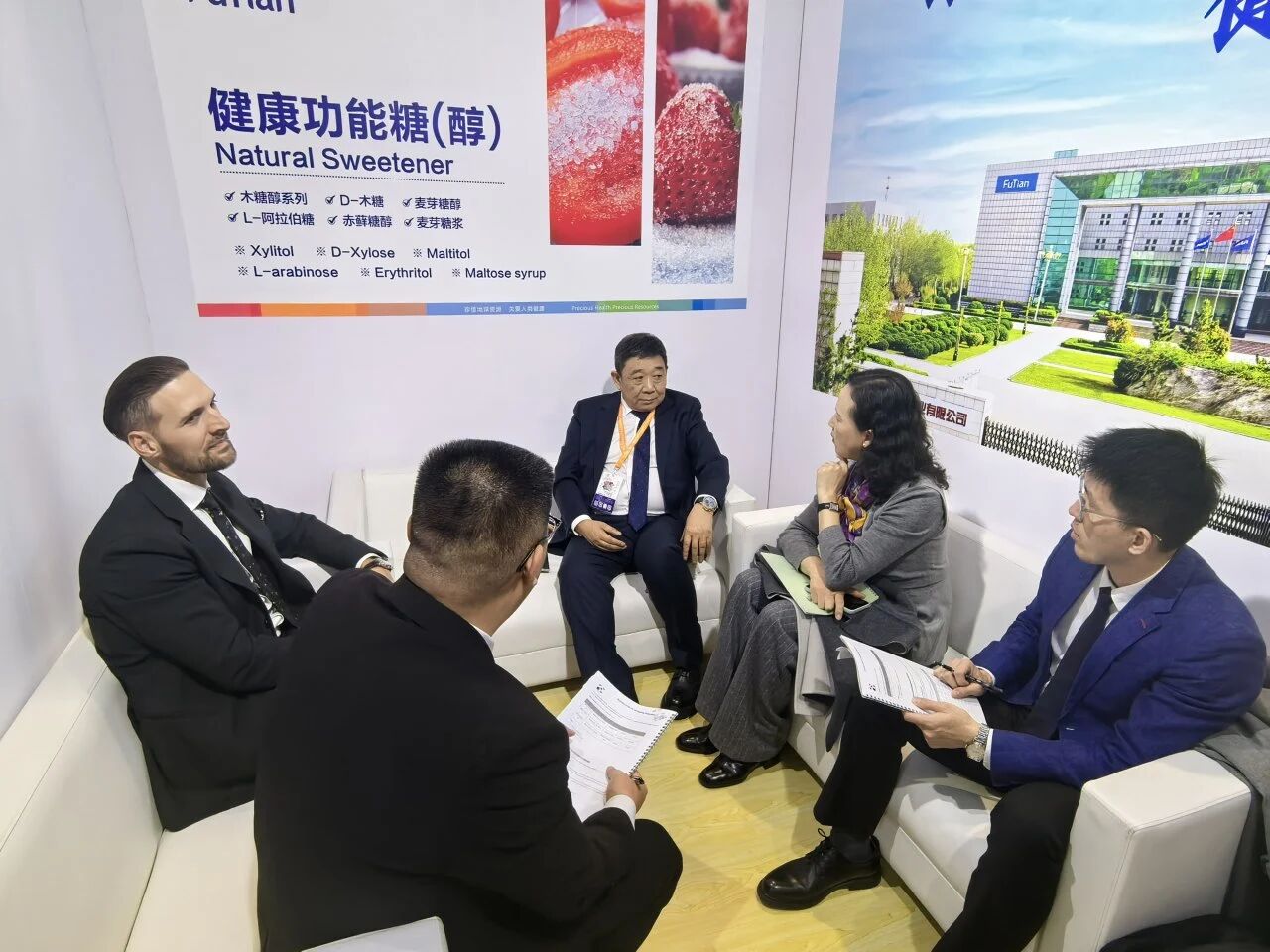 本次展出的原料类产品涵盖木糖醇、麦芽糖醇、赤藓糖醇、L-阿拉伯糖、D-木糖、麦芽糖浆、麦芽糖醇液及复配甜味剂等明星单品。凭借纯天然、低热量/零热量、口感纯正、健康无负担等核心优势,成为现场咨询热点。