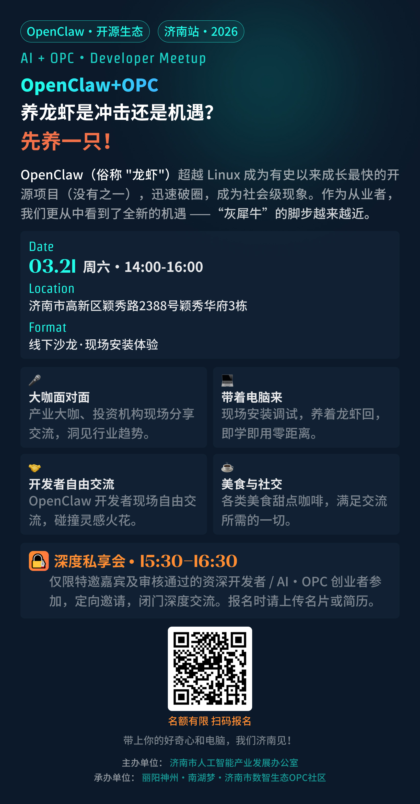 OpenClaw+OPC开发者线下沙龙将于3月21日在济南举办