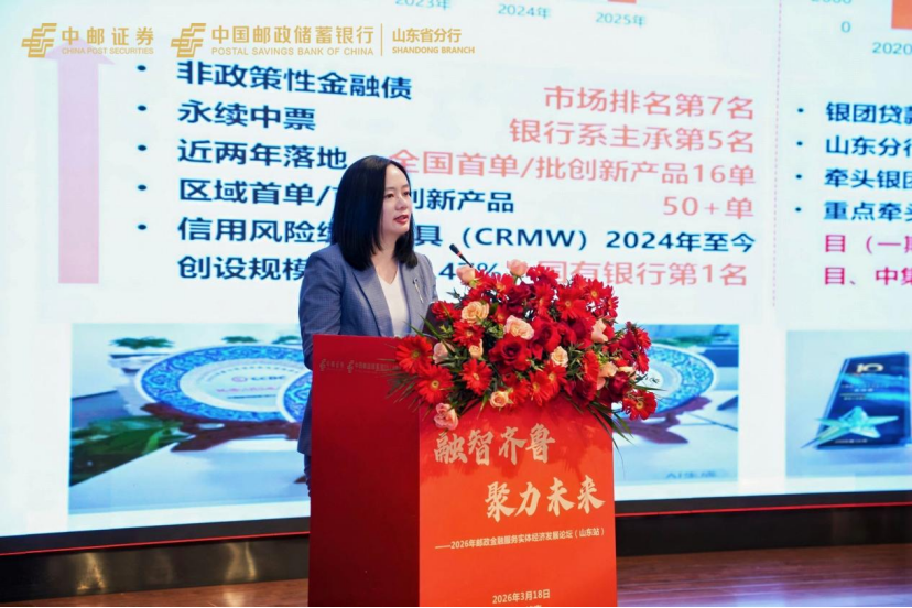 3月18日,中邮证券有限责任公司与中国邮政储蓄银行山东省分行联合主办的“2026年邮政金融服务实体经济发展论坛(山东站)”在济南举行。