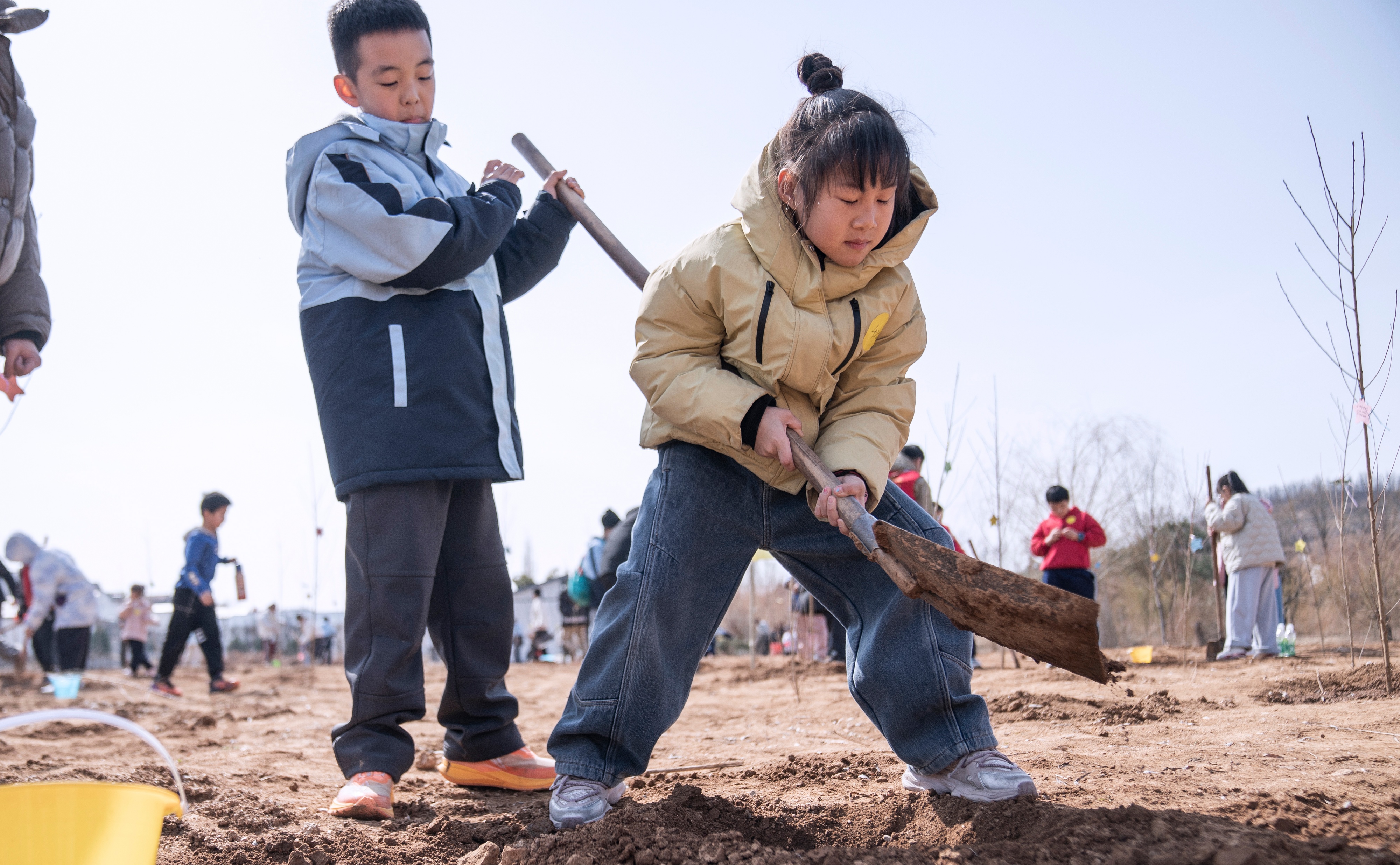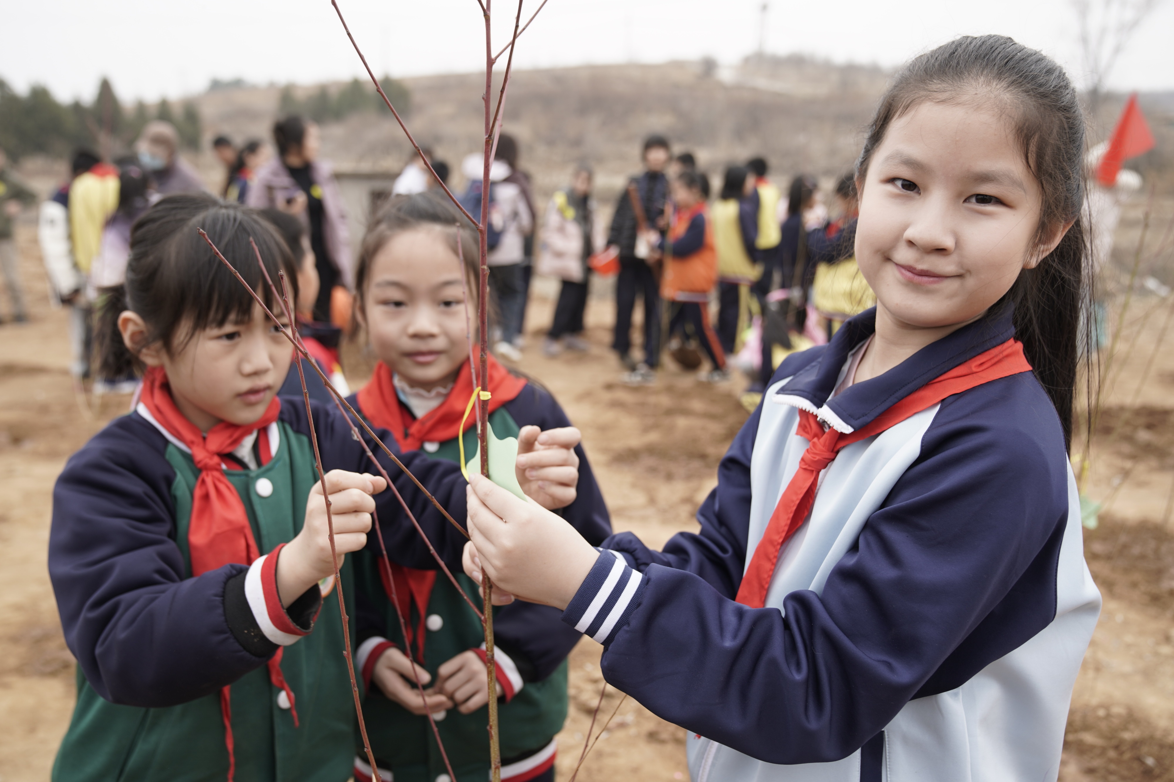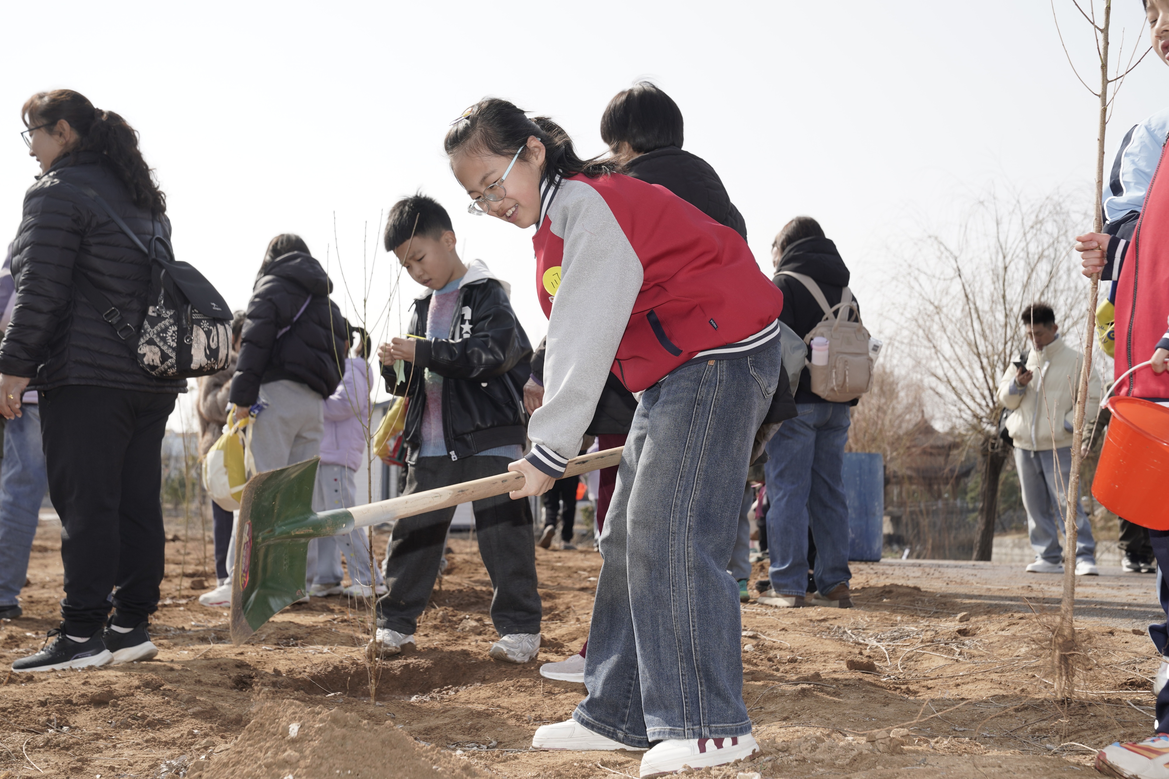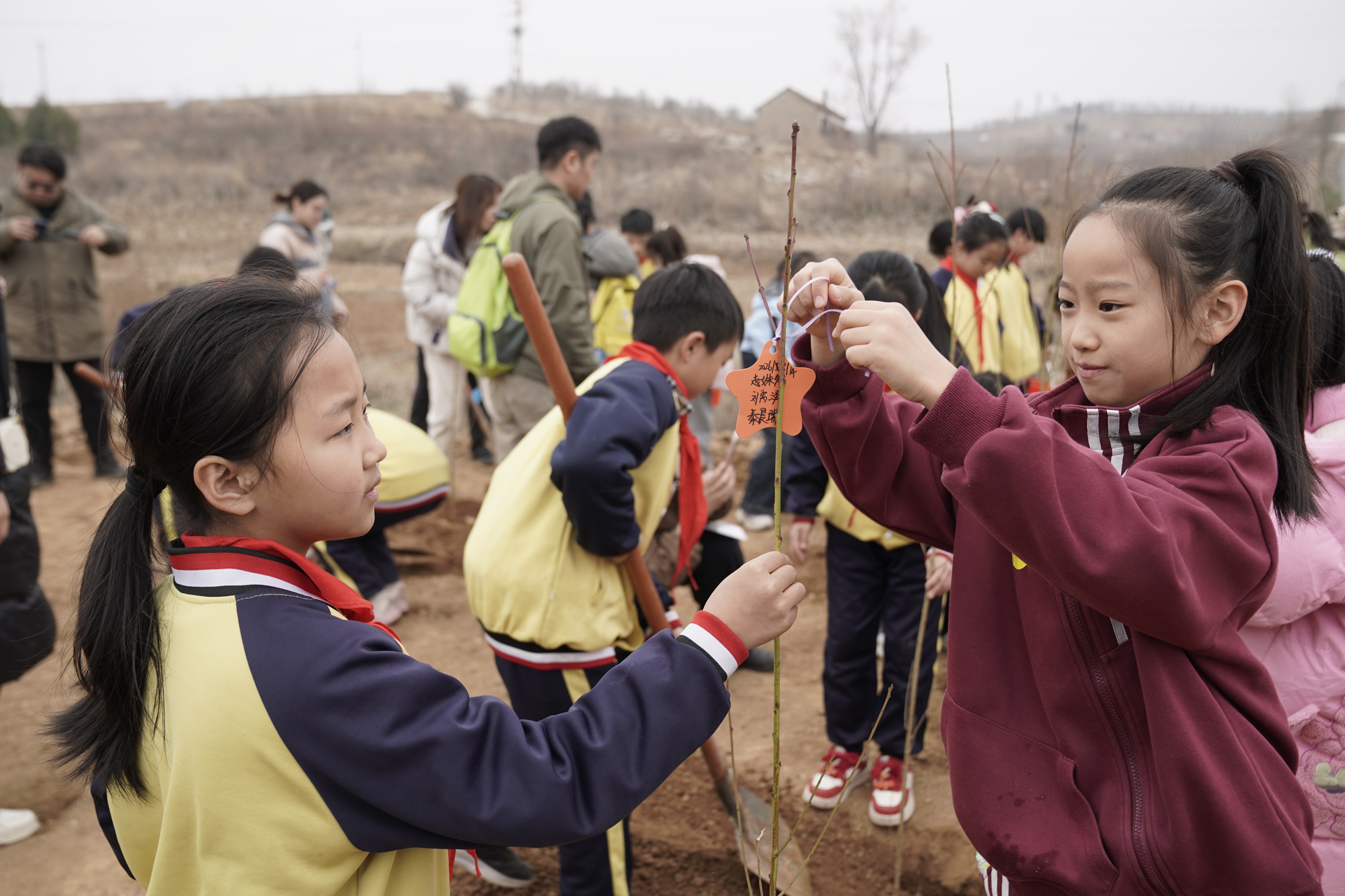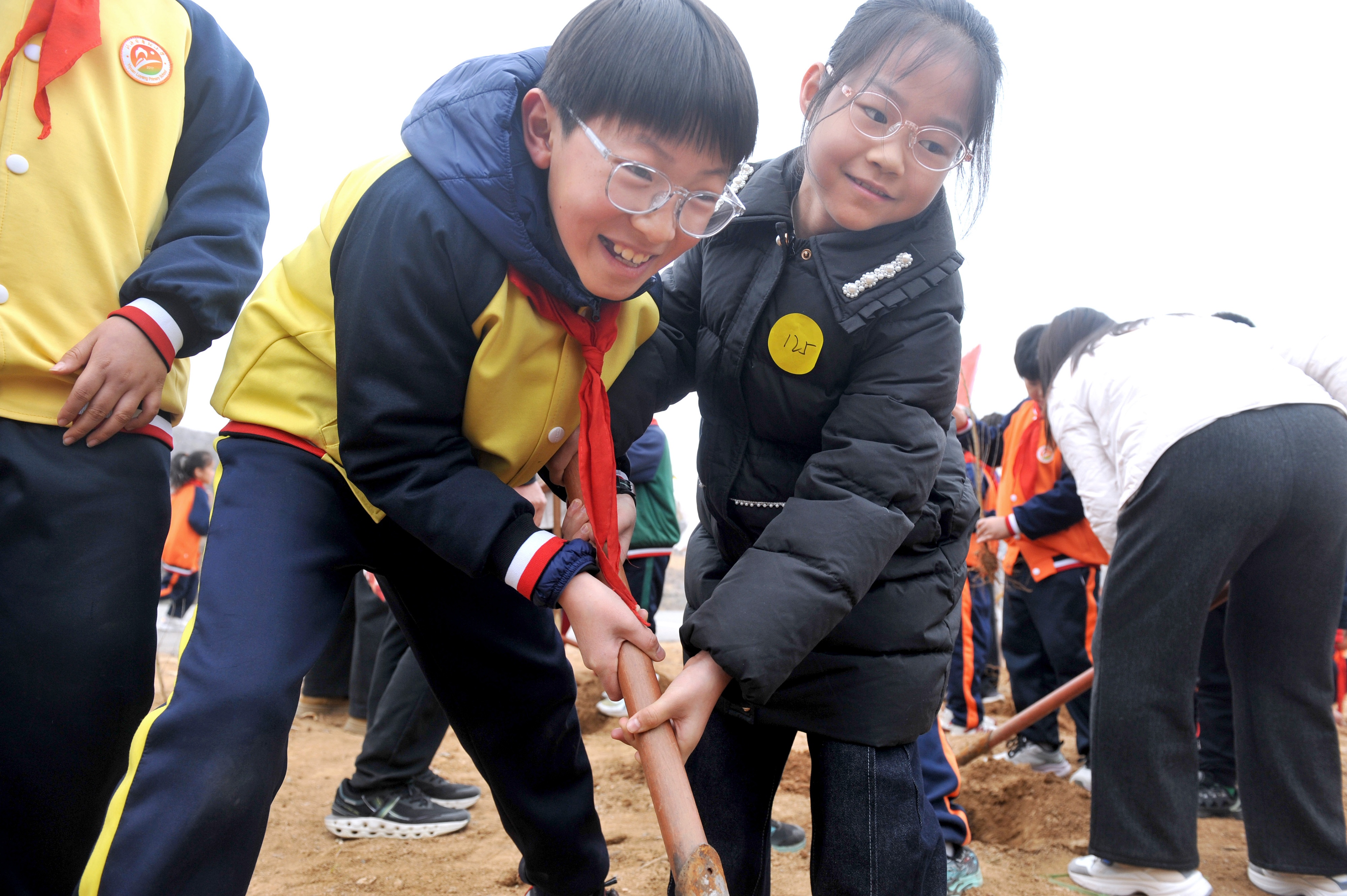 孩子们结伴挥锹、培土、浇水,把春天的小树苗稳稳种进泥土里。协作中,他们悄悄种下友情;泥土中,他们认真种下希望。
