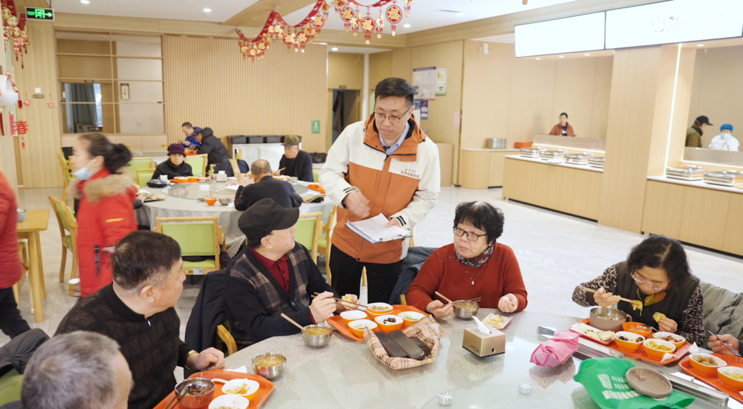 此次报道中,养老示范城的营养膳食服务成为亮点之一。34岁的杨俊哲扎根这里,为长者们的餐桌保驾护航。午餐时分,他总会俯身与长者亲切交流,仔细询问菜品口味与份量,认真记录饮食偏好和健康状况,并第一时间与后厨沟通优化。在他看来,老年餐并非 “寡淡软烂”,而是精准适配长者身体、营养与美味兼顾的健康守护。面对思亲的新入住长者,他还会量身定制家常菜品,用熟悉的味道温暖人心。这份用心与专业,正是养老示范城精细化服务的生动缩影。