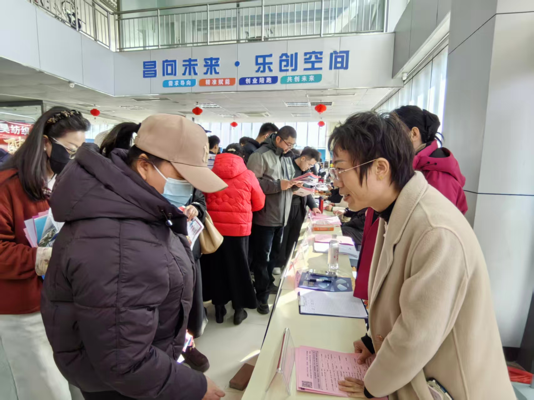 3月18日,正逢潍坊市昌乐县红河大集。与往常不同的是,这次大集上拉起了“昌乐县人社局送岗下乡招聘活动”的红色横幅,一长排“摊位”前围满了人。工作人员穿梭其间,向赶集的村民热情推介岗位、发放资料、登记求职信息,现场咨询的村民络绎不绝,面对丰富的岗位和不错的用工条件,不少人当场与企业达成了就业意向。