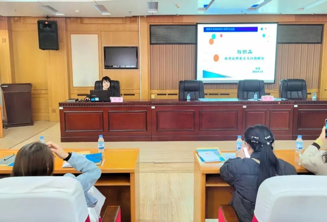 会议还邀请了总院纺织检验专家陈静对相关产品标识和标准进行了讲解,会后还组织大家参观了市检检测计量研究总院纺织品实验室并进行了现场讲解答疑。