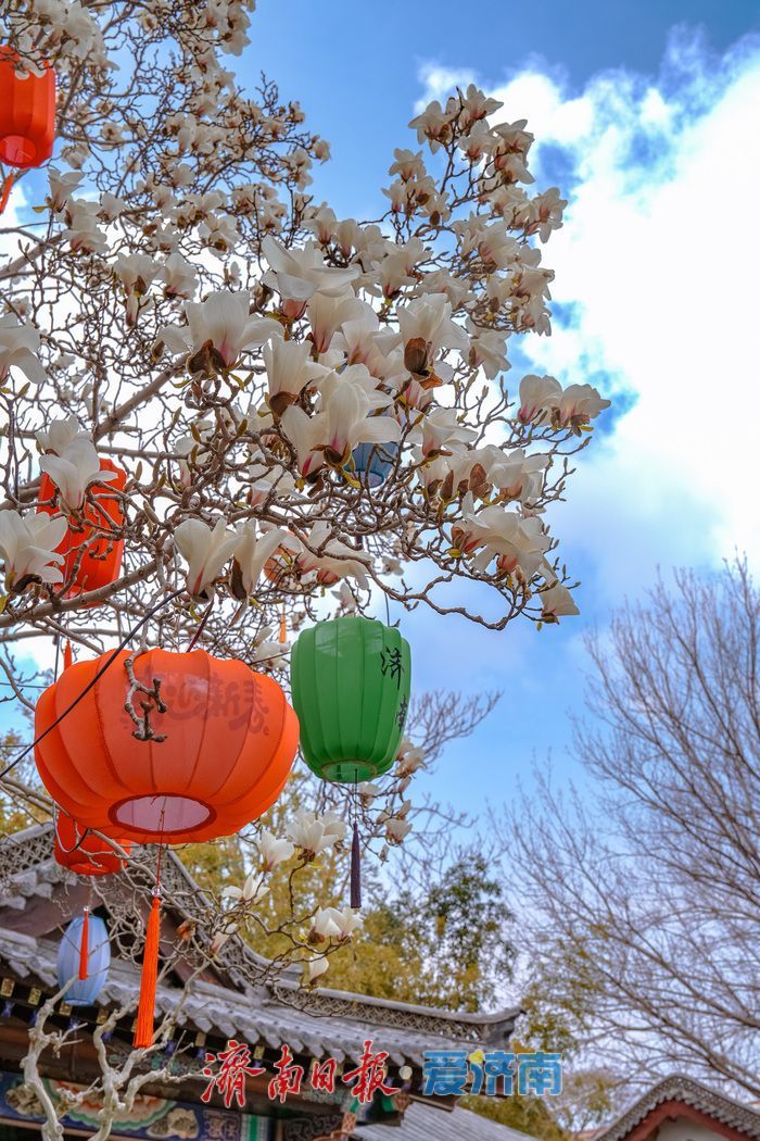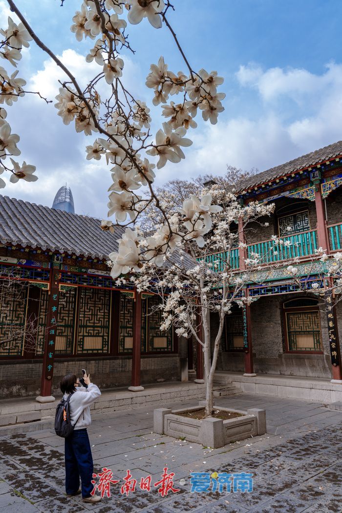 济南趵突泉万竹园:玉兰盛放映古建春色满园醉游人