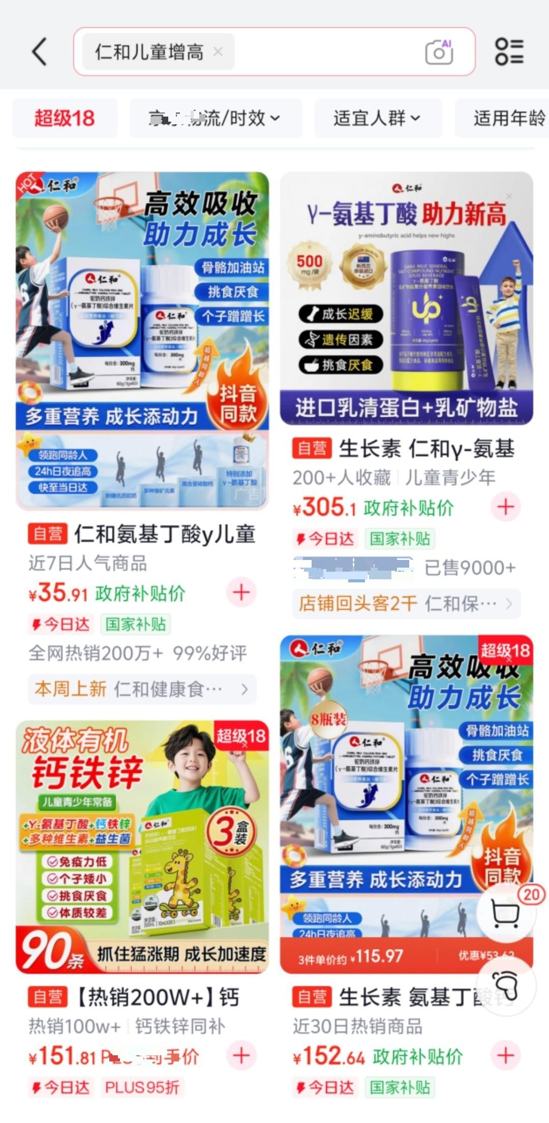 “3瓶周期服用,一般反馈长高2-3厘米。”3月18日,在某电商平台“仁和Y-氨基丁酸助力新高”产品咨询中,客服向齐鲁晚报·齐鲁壹点记者作出上述承诺。而就在三天前,媒体刚刚曝光了γ-氨基丁酸(GABA)产品违规宣传“助长高”的营销乱象,并点名“仁和”等品牌存在隐晦关联。