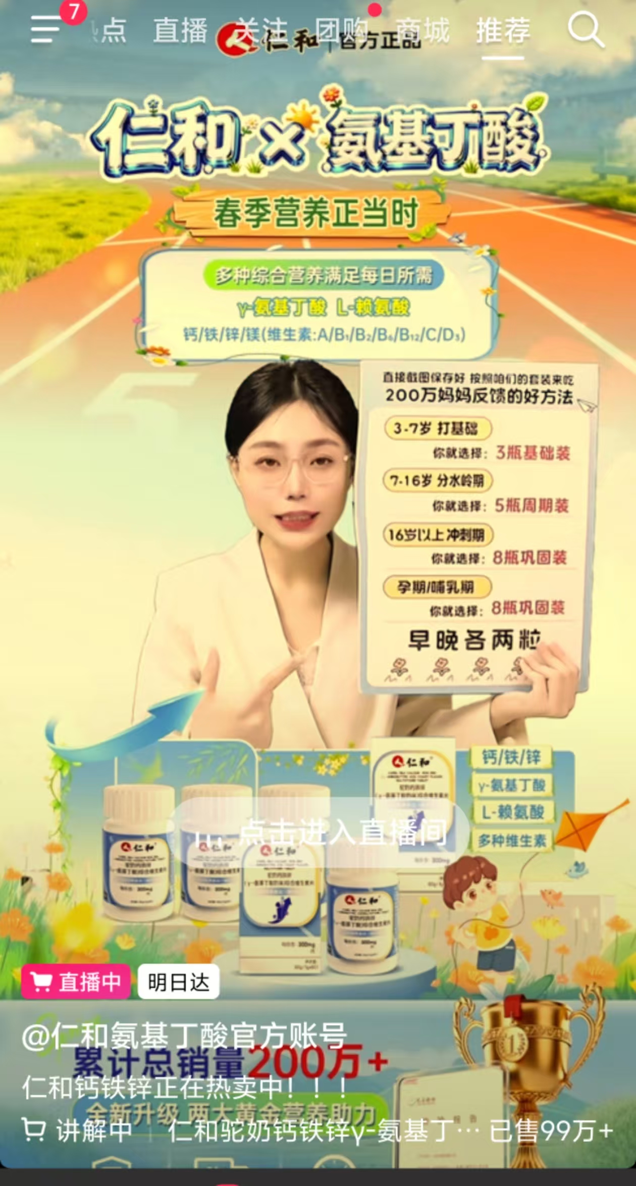 此外,记者在 3 月 18 日某音平台的直播画面中,也发现相关仁和 γ- 氨基丁酸相关产品仍在进行直播销售。