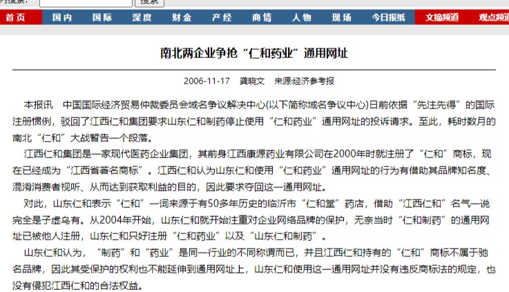 公开信息显示,两家企业此前曾围绕 “仁和” 品牌的使用权及网址使用问题,产生过相关争议。