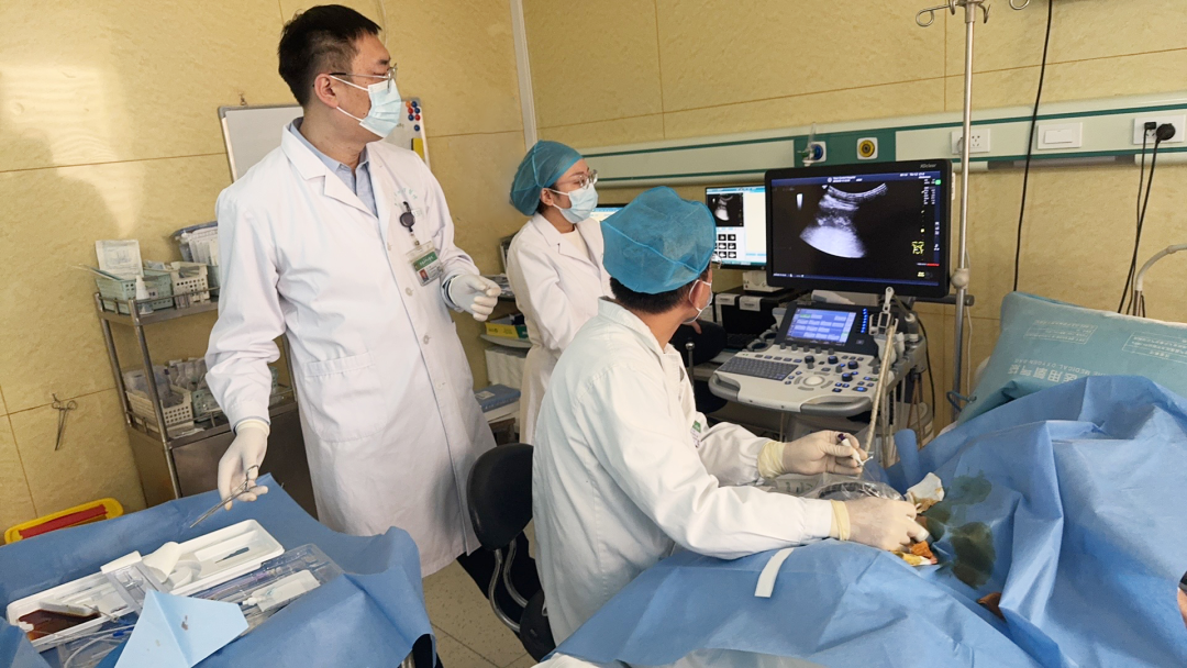肝胆胰腺外科副主任医师王越团队在科主任魏洪吉指导下,全程统筹围术期管理。针对患者复杂病情,个体化调整抗感染方案(避开过敏药物),同步强化心肾支持,确保脏器功能稳定,为微创操作保驾护航。王越表示:“这类危重患者,传统手术几乎不可行。超声介入提供了精准、微创、高效的解决方案,而多学科无缝协作,才是救命的关键。”