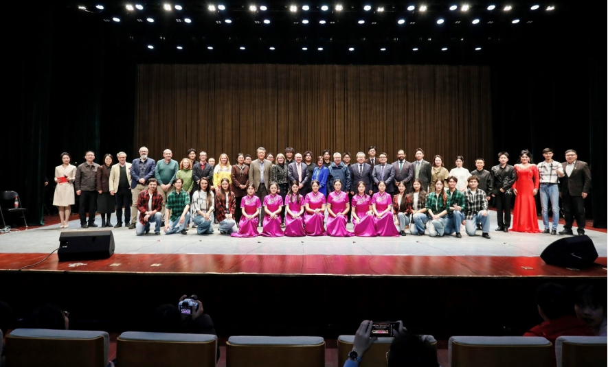 当晚,“和鸣中爱·文化共响”中爱联合文艺演出在圣昆仑音乐厅举行。山东大学艺术学院师生与爱尔兰新节奏踢踏舞团、初甲林与Canú乐队同台演出,呈现了一场中西交融的视听盛宴。