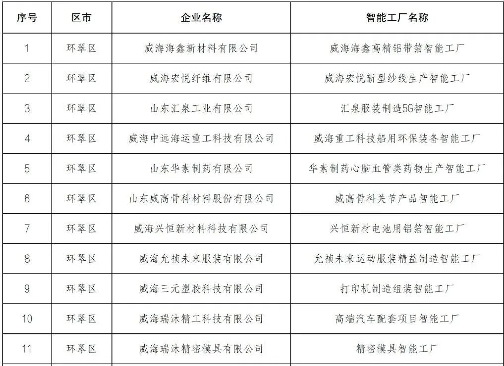 环翠区新增11家智能工厂,创历年新高!