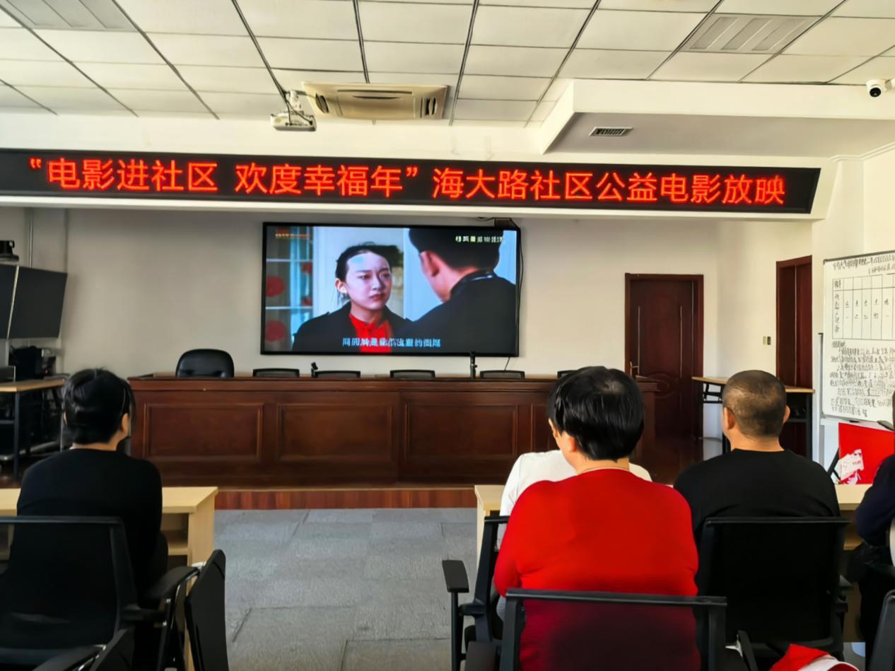 为了让大伙儿看得开心,海大路社区工作人员提前摸底、精心遴选,最终确定了兼具思想性、艺术性与观赏性的优秀国产影片。其中,影片《人生开门红》以轻松幽默的叙事,传递积极向上的生活态度,赢得观众一致好评。“这电影名听着就喜庆,还很吉利。”年逾七旬的居民牟先生早早来到社区活动室,挑了前排的座位。