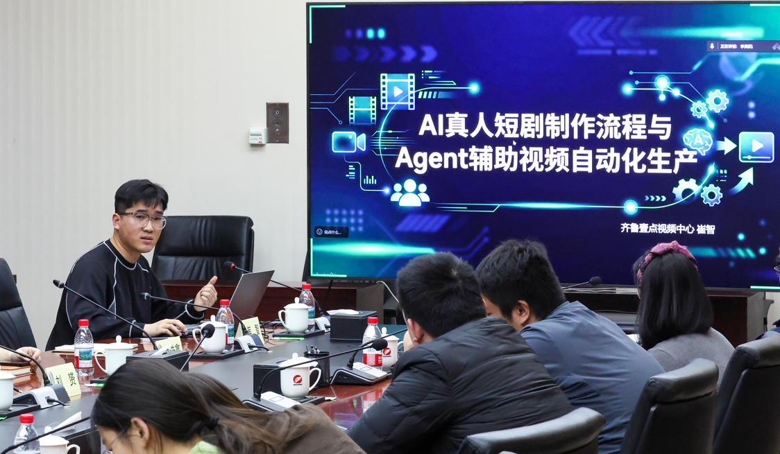 “融媒有技”讲授与研讨小班课是2026年大众报业集团业务培训计划中的一项重要内容,本次活动是小班课的首课。课堂上,四位深耕一线、经验丰富的主讲老师——山东省互联网传媒集团技术委员会委员、数码设计部主任刘赟,“大众”新媒体大平台新媒体创新实验室编辑唐浩鑫,大众日报•大众新闻视觉中心记者石少汛,齐鲁壹点视频中心编辑崔智——从工具选择到操作流程、从关键词设计到视听语言构建,系统拆解AI视频生产的实用方法。