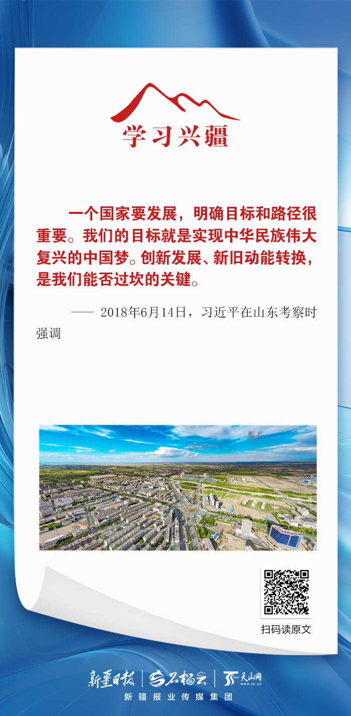 一个国家要发展,明确目标和路径很重要。我们的目标就是实现中华民族伟大复兴的中国梦。创新发展、新旧动能转换,是我们能否过坎的关键。——2018年6月14日,习近平在山东考察时强调